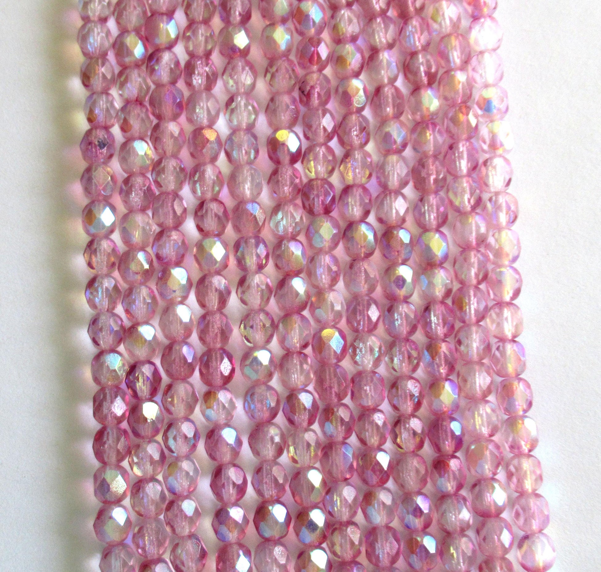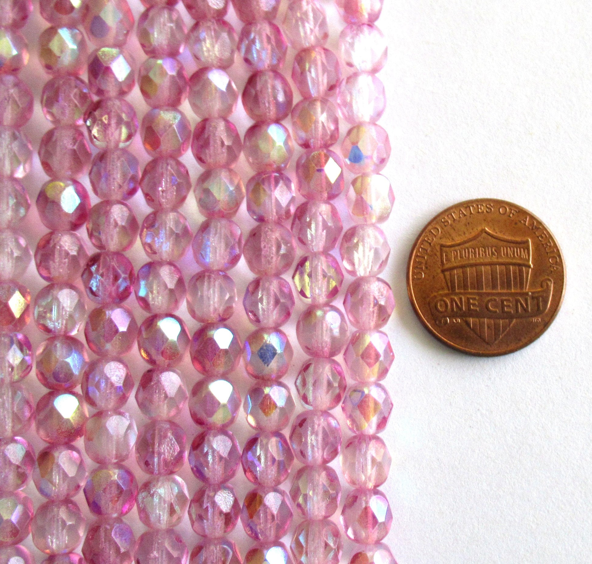 Lot of 25 6mm Czech glass beads - Coated Violet AB - light purple amethyst - almost pink - fire polished faceted round beads - C0016