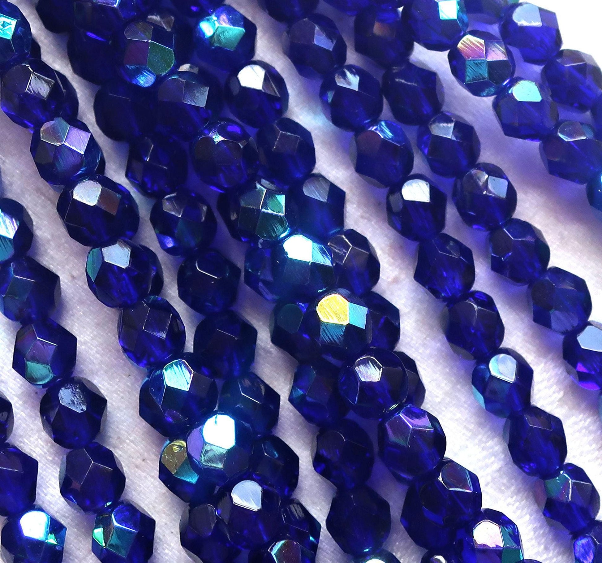 Lot of 25 6mm Czech glass beads, cobalt blue AB fire polished faceted round beads C7525