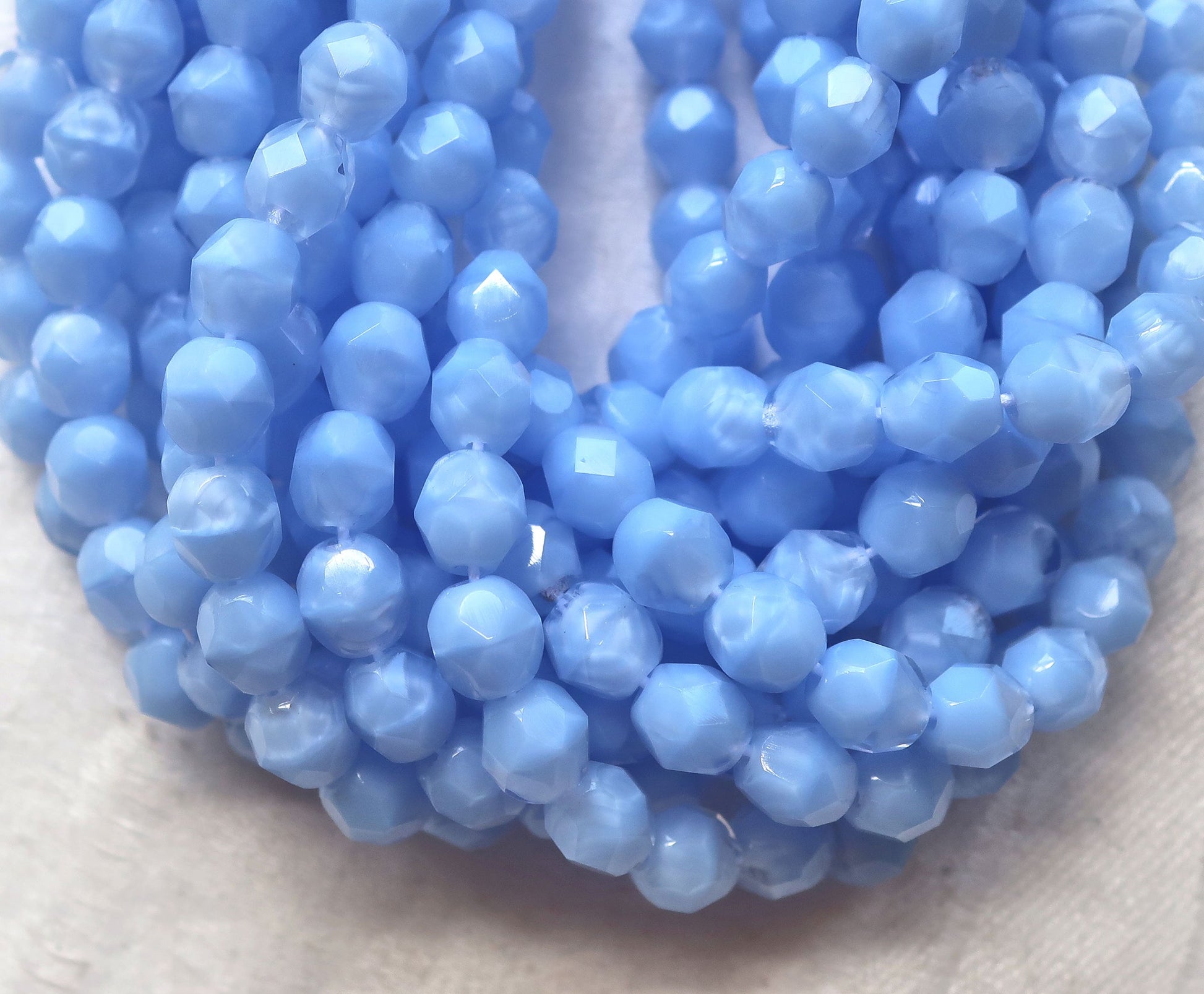 25 6mm Czech glass beads, marbled opaque and transparent light coral blue fire polished faceted round beads C7425