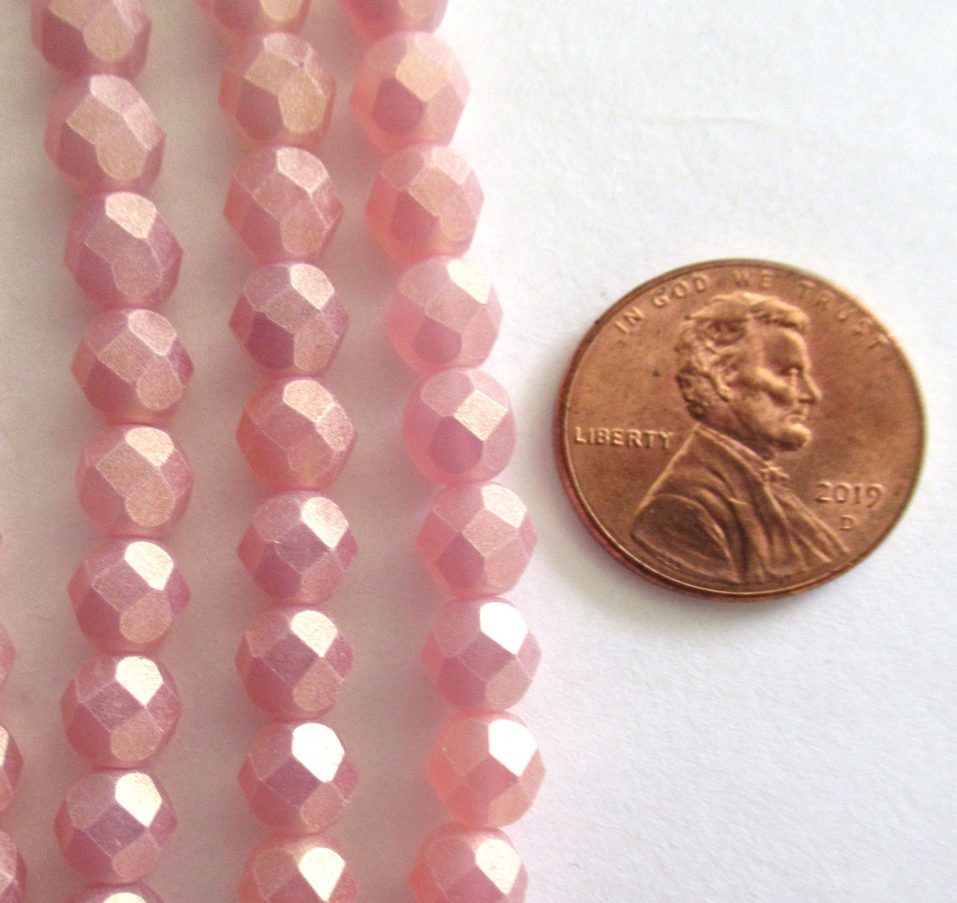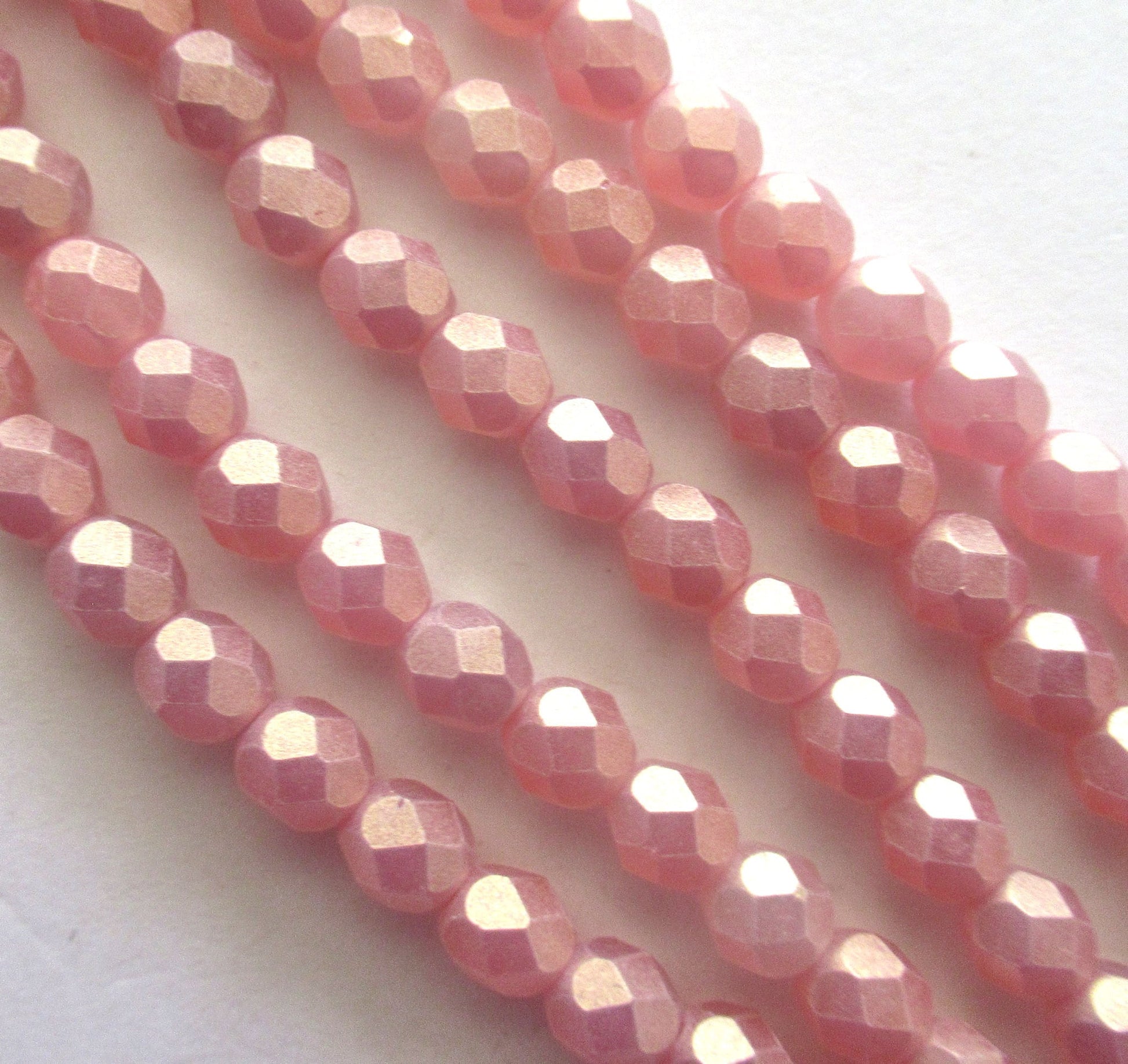 Lot of 25 6mm sueded gold milky pink Czech glass beads - round, faceted fire polished beads C0036