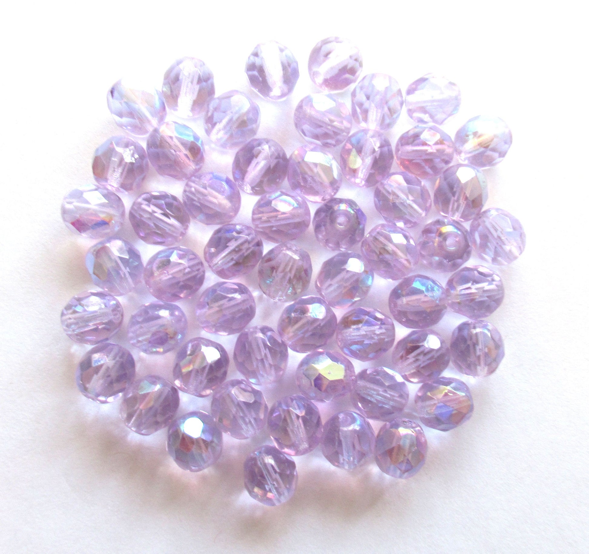 Lot of 25 8mm Czech glass beads - alexandrite lilac lavender ab fire polished faceted round glass beads C0028