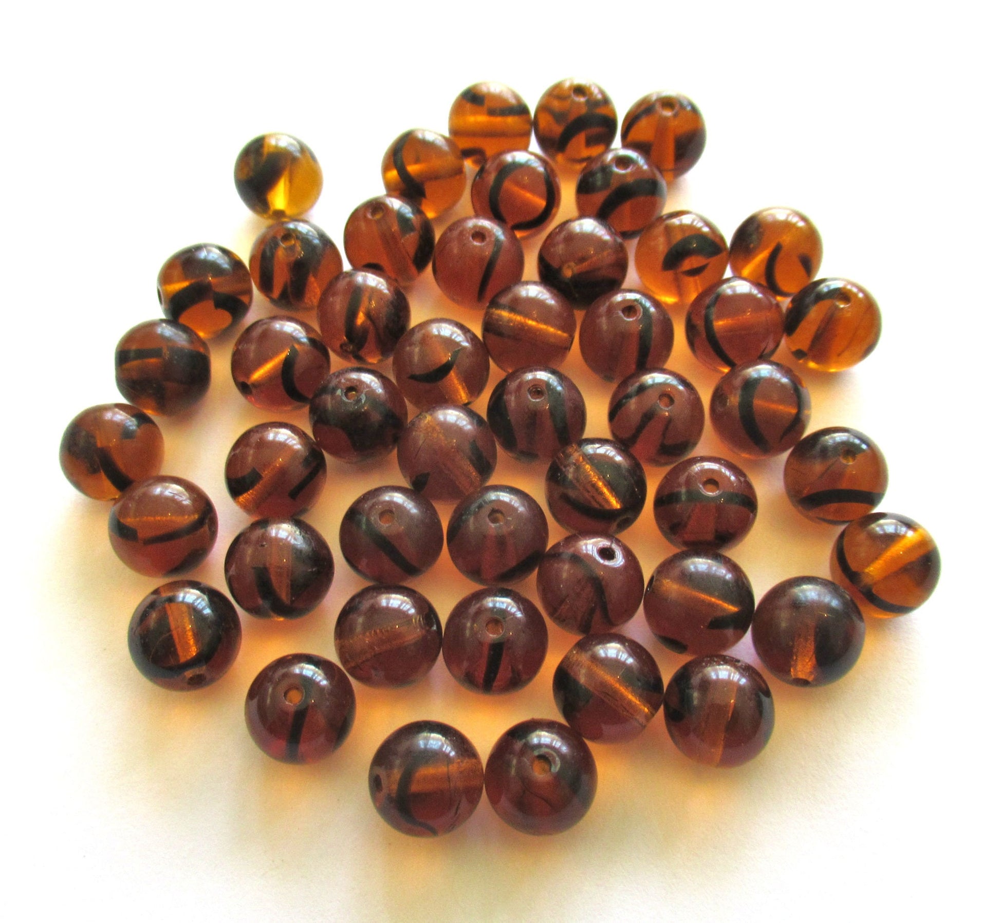 Lot of 25 8mm Czech glass druk beads - tortoise shell brown smooth round druks, C0023