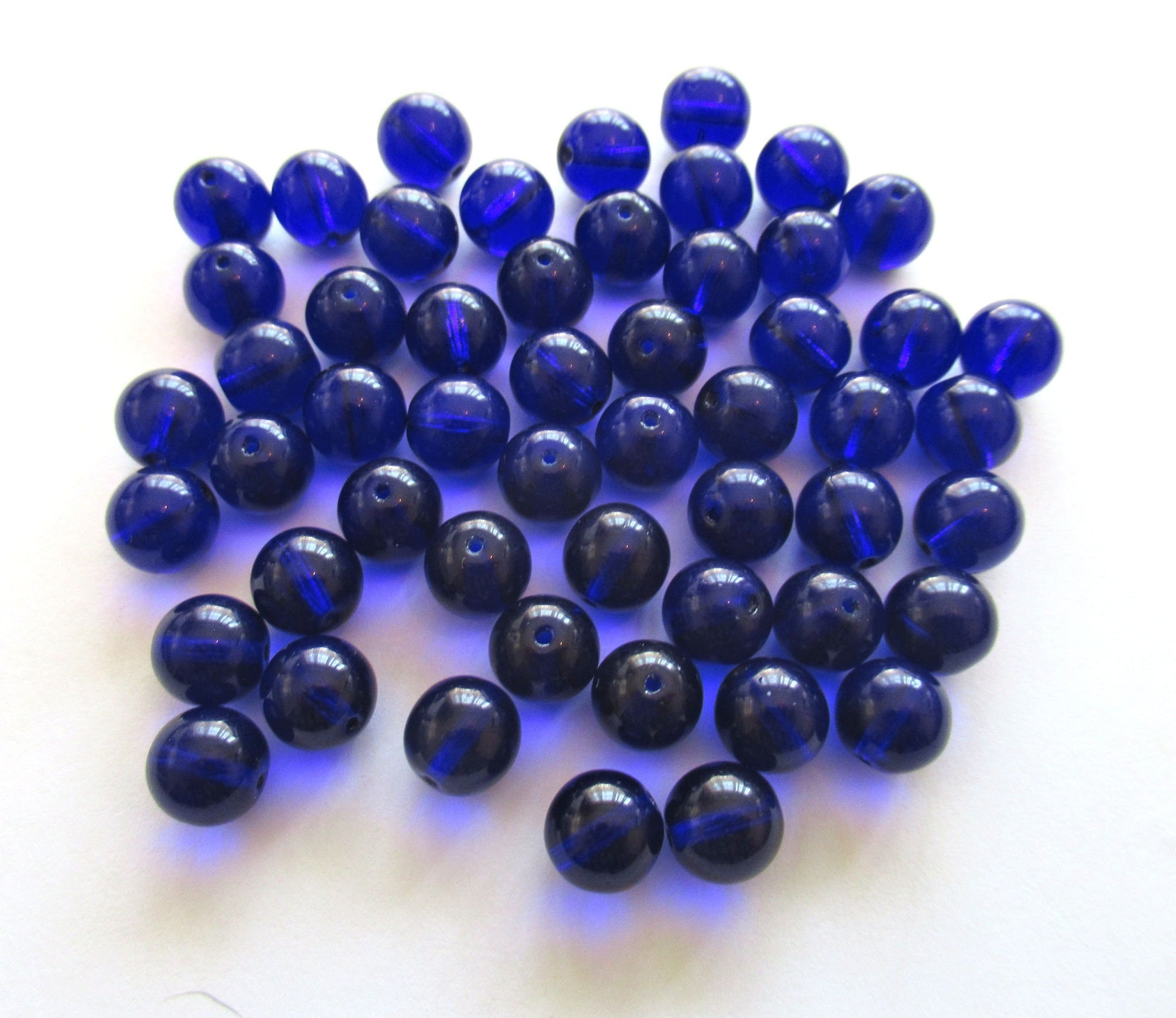 Lot of 25 8mm Czech glass druks - Cobalt Blue smooth round druk beads - C0043