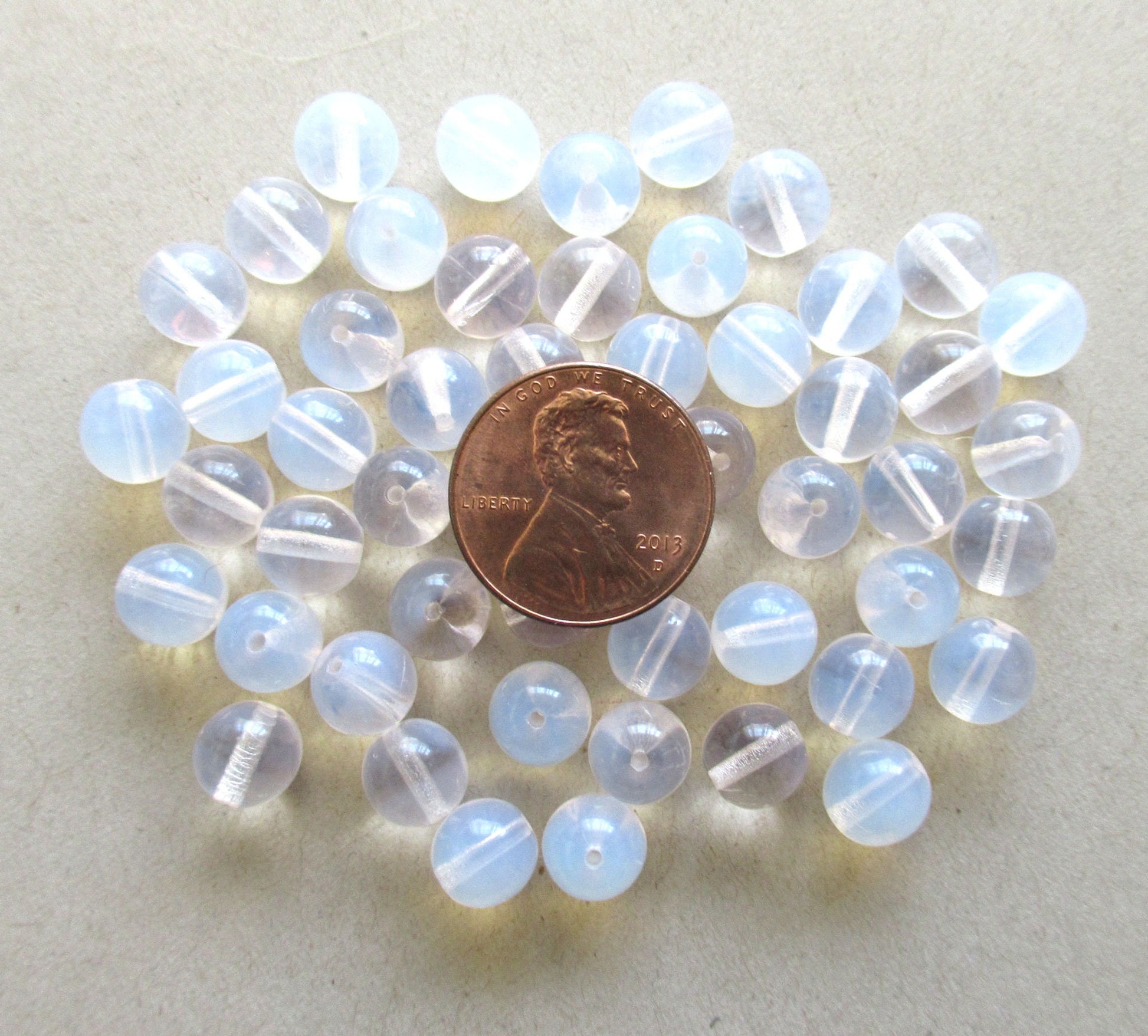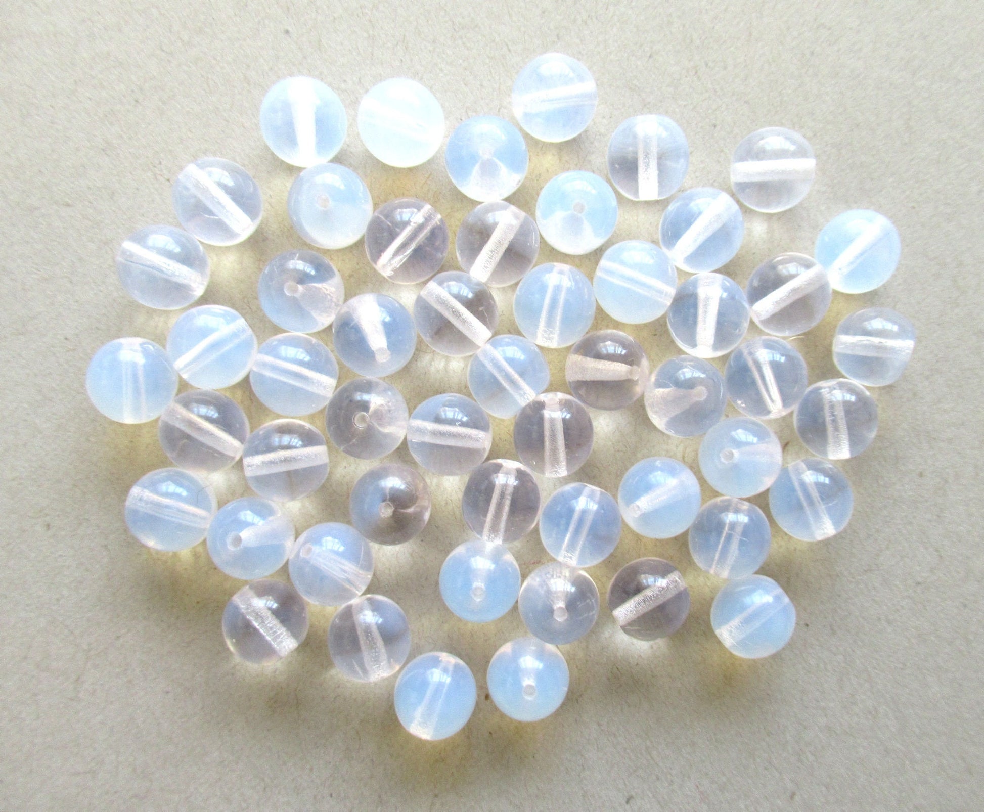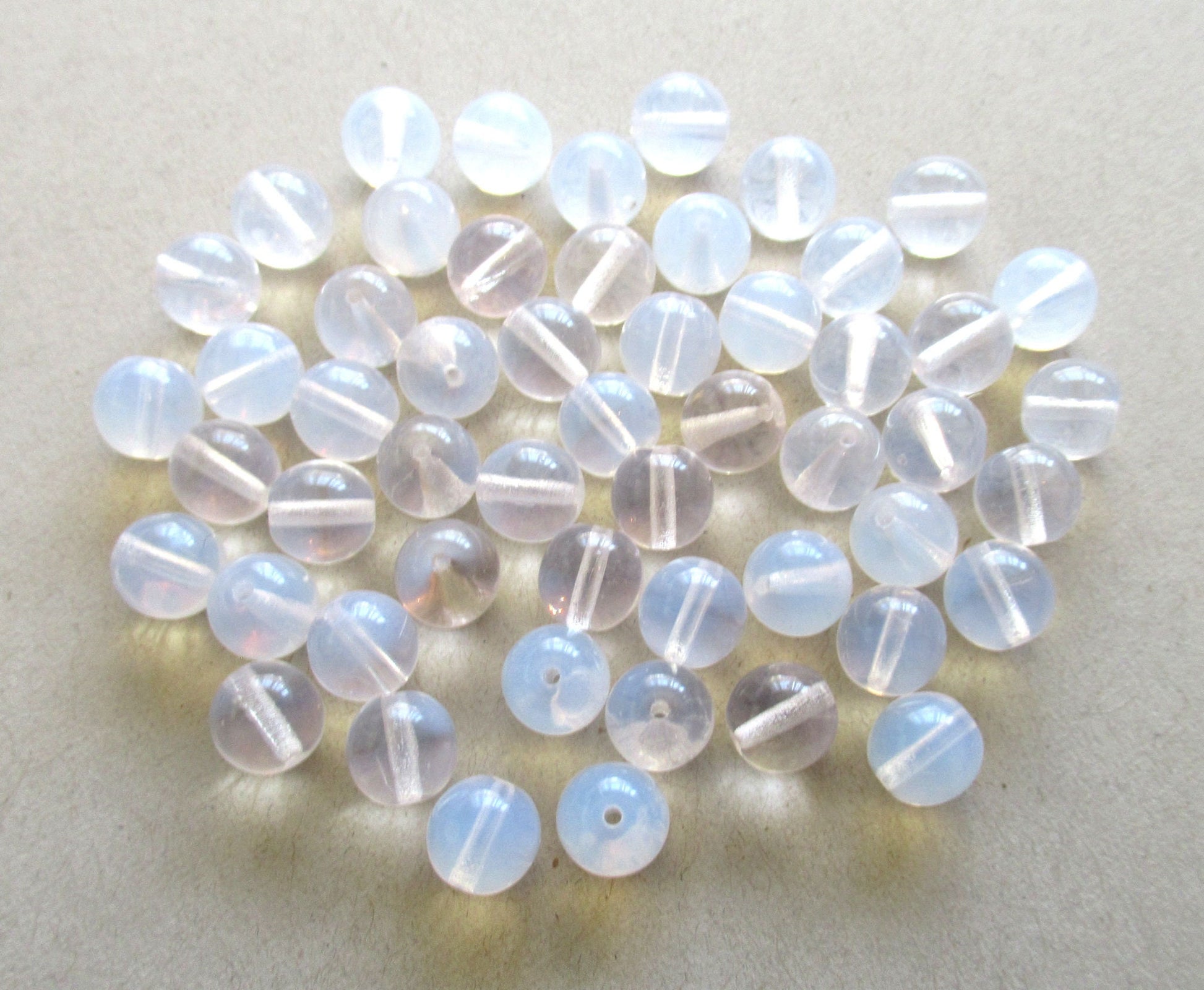 Lot of 25 8mm Czech glass druks - translucent milky white neutral opaline smooth round druk beads C0005