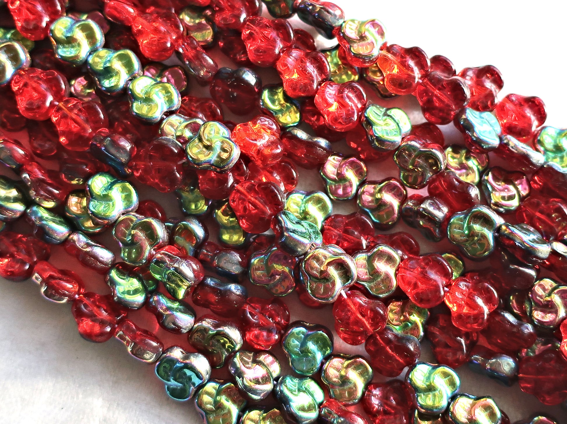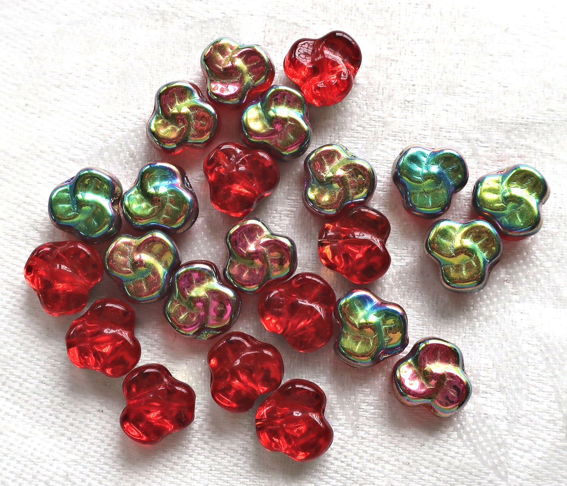 Lot of 25 9mm Czech flat Red Pansy beads, light siam ruby red vitral flower beads C0046