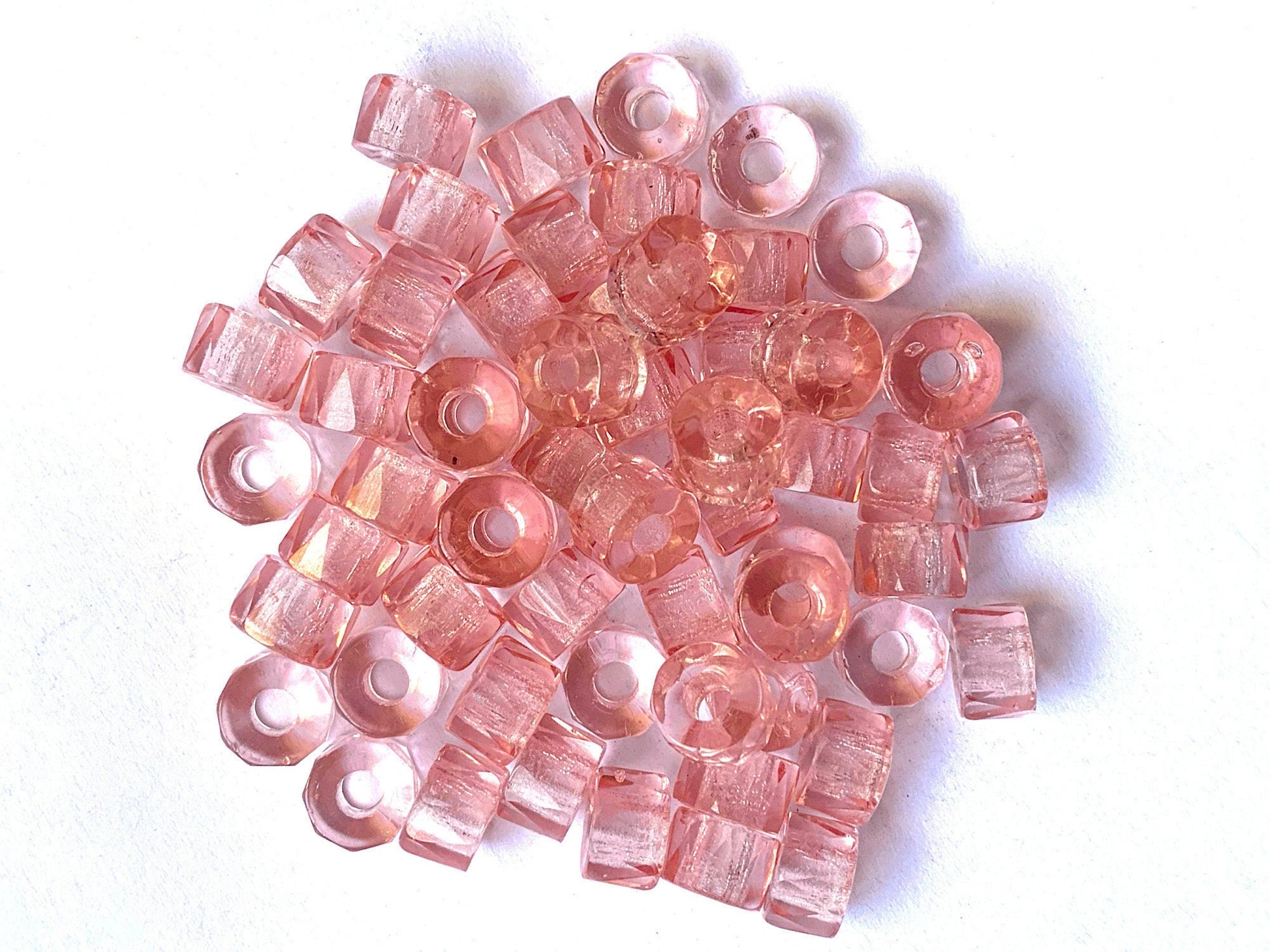 Lot of 25 9mm Czech glass faceted pony or roller beads - rosaline pink - large hole glass crow beads C0951