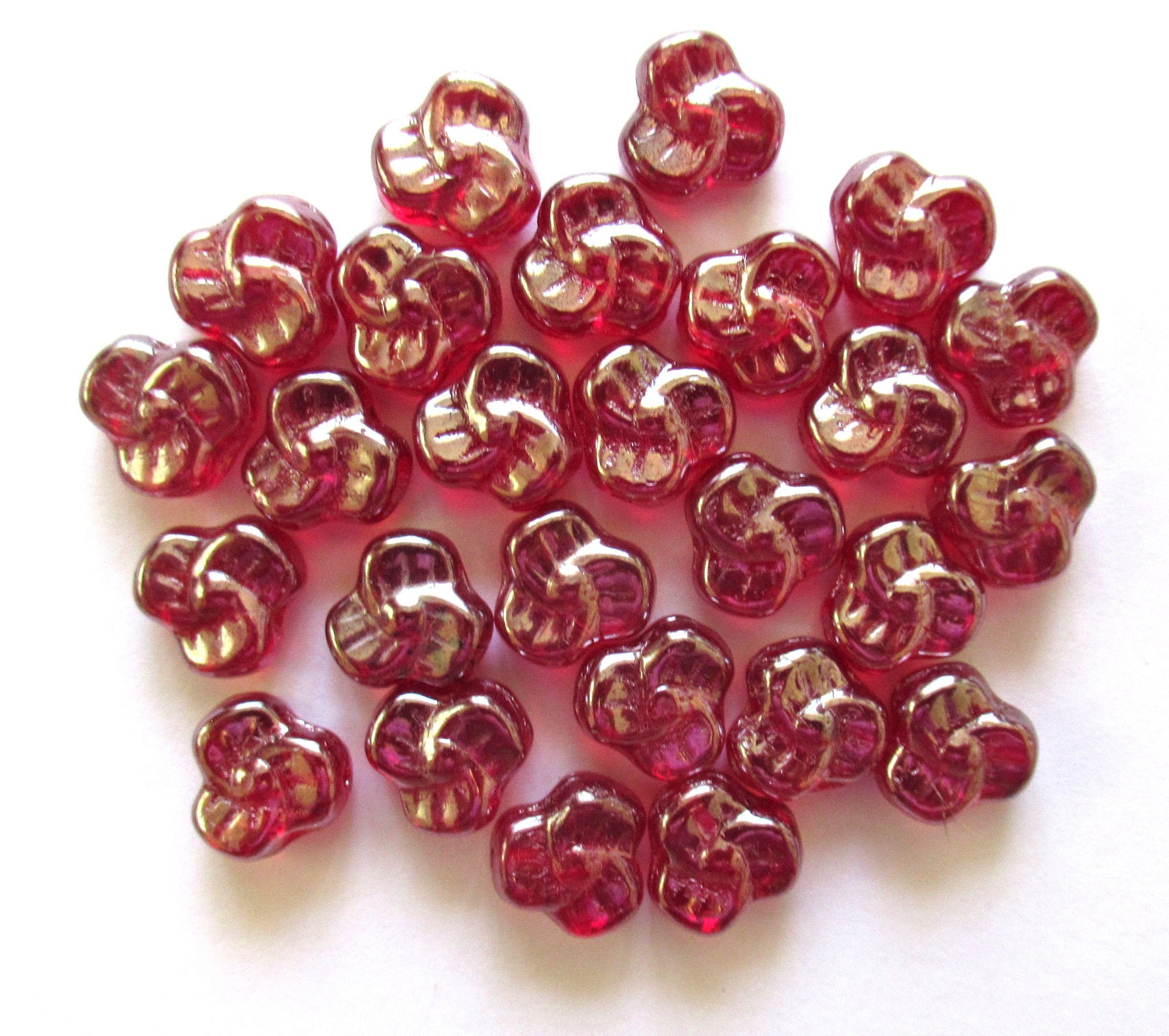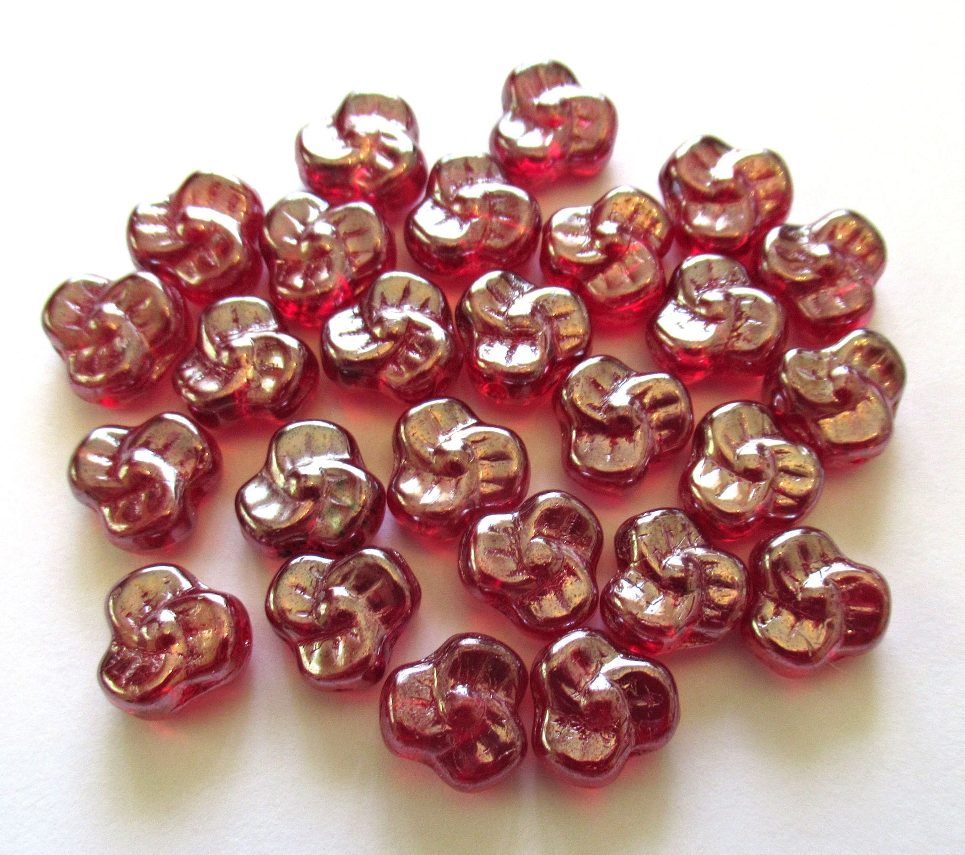 Lot of 25 9mm Czech red glass pansy beads - light garnet red shimmer flower beads C0009