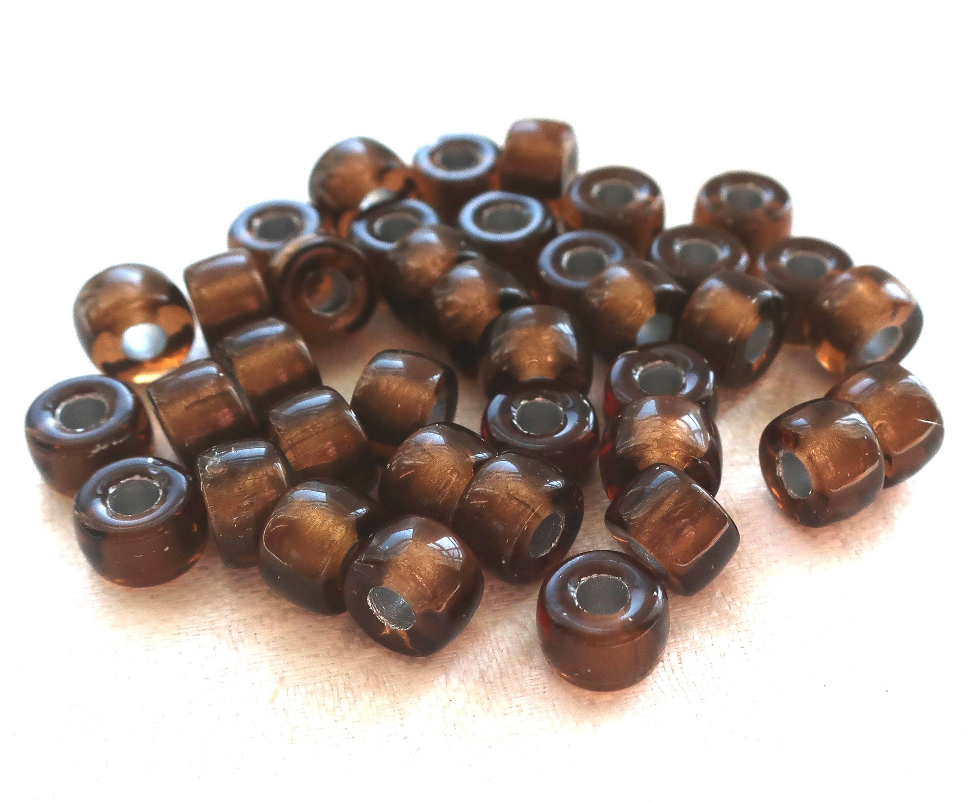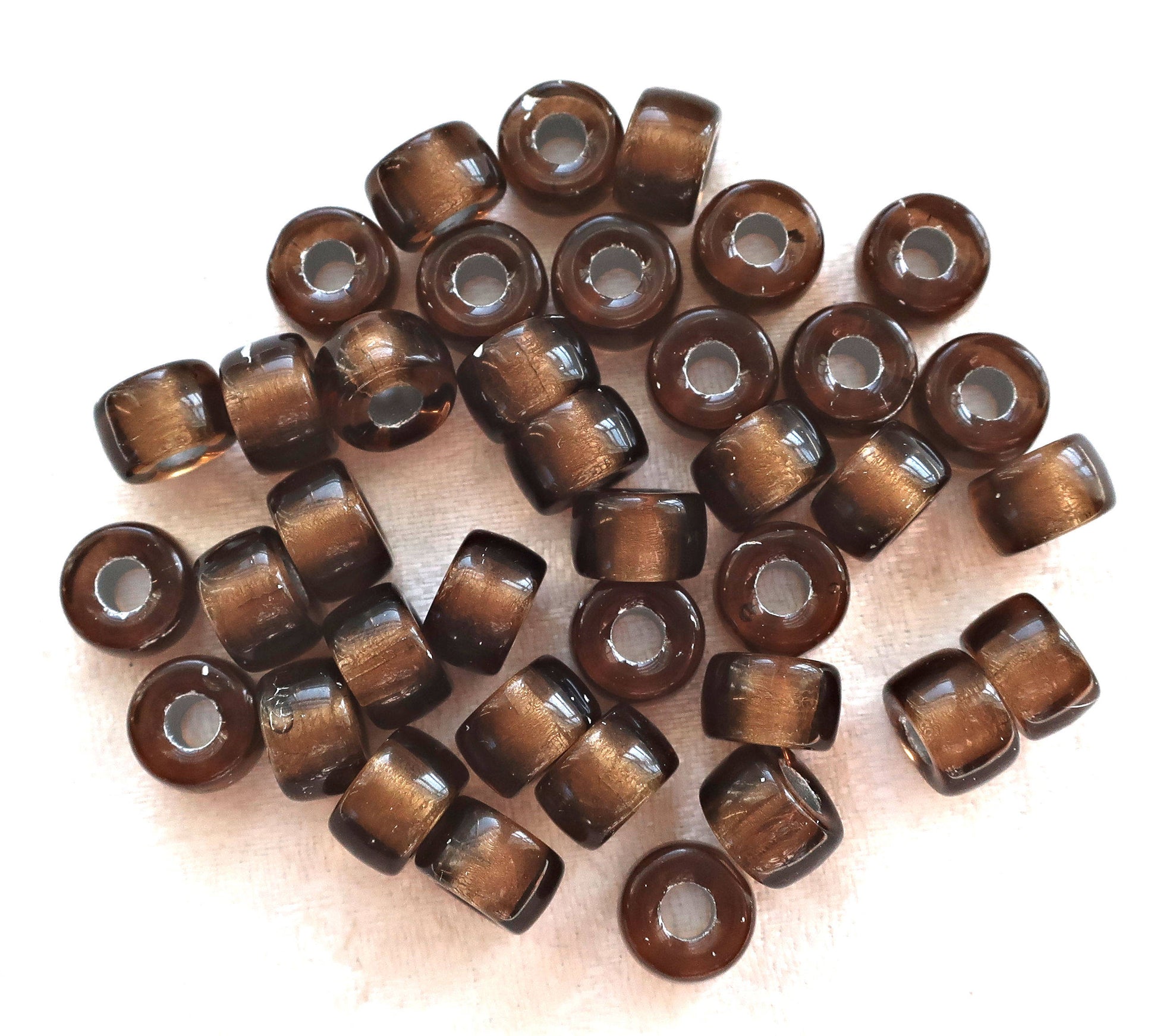 Lot of 25 9mm Smoky Topaz, Brown, Silver Lined Czech glass pony beads, roller or crow beads with large big 3mm holes C0087