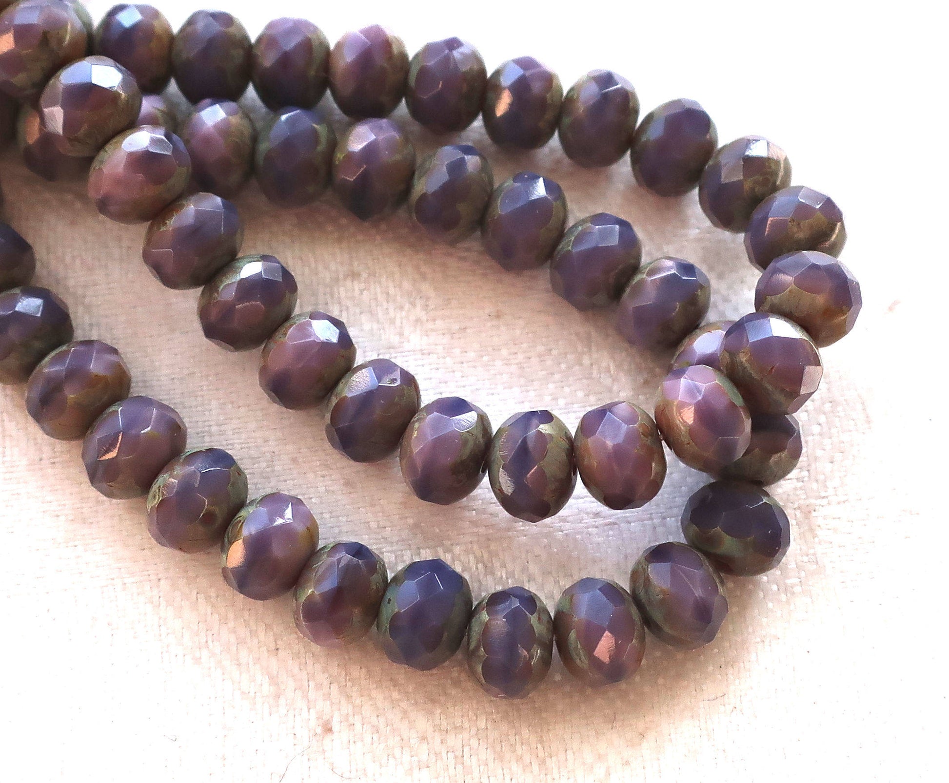 25 Czech glass faceted puffy rondelle beads, 5 x 7mm opaque purple, amethyst with pink mix, & picasso finish rondelles C00201