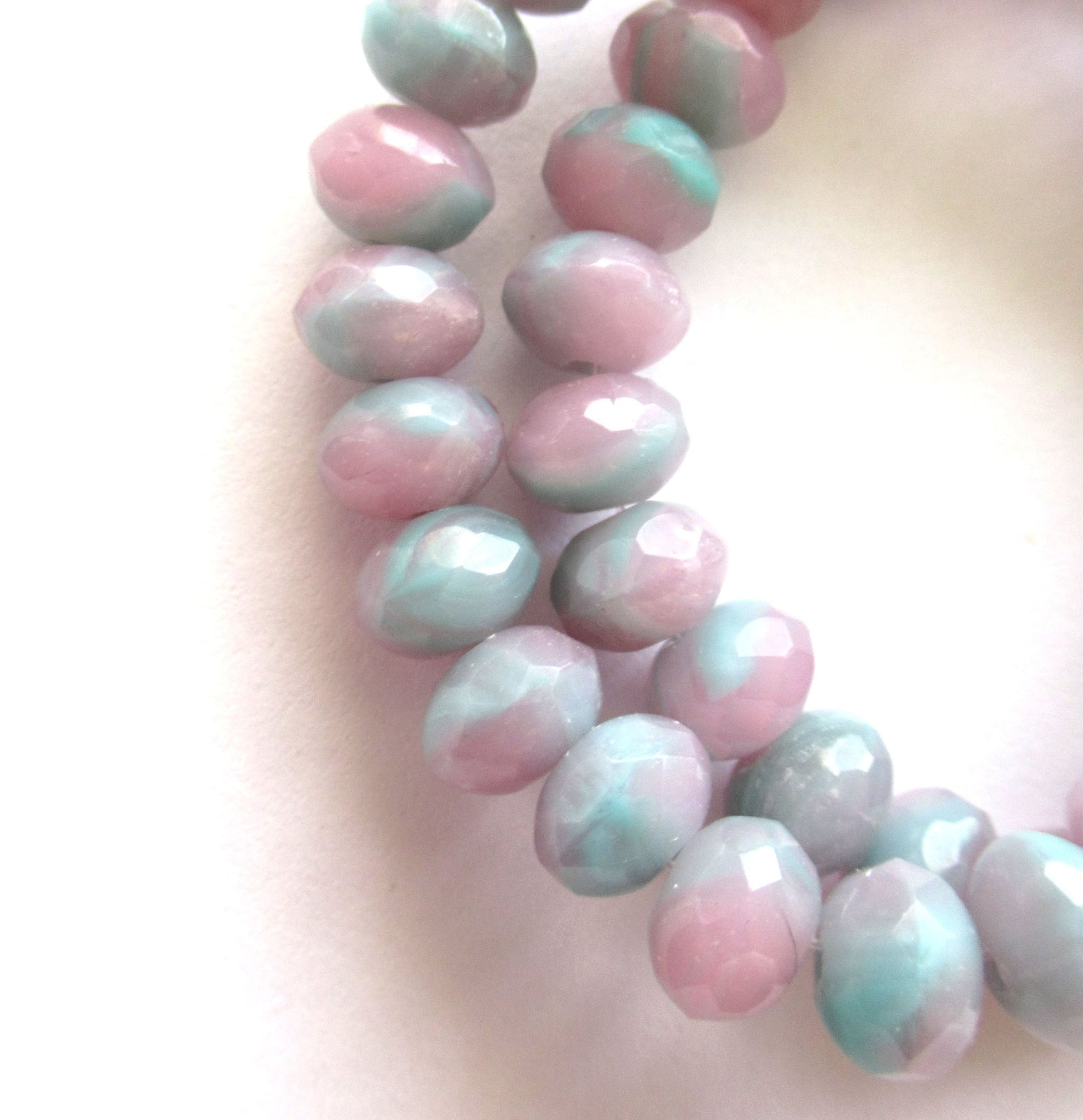Lot of 25 Czech glass faceted puffy rondelle beads - 5 x 7mm pastel pink & blue / mint green mix rondelles C00612