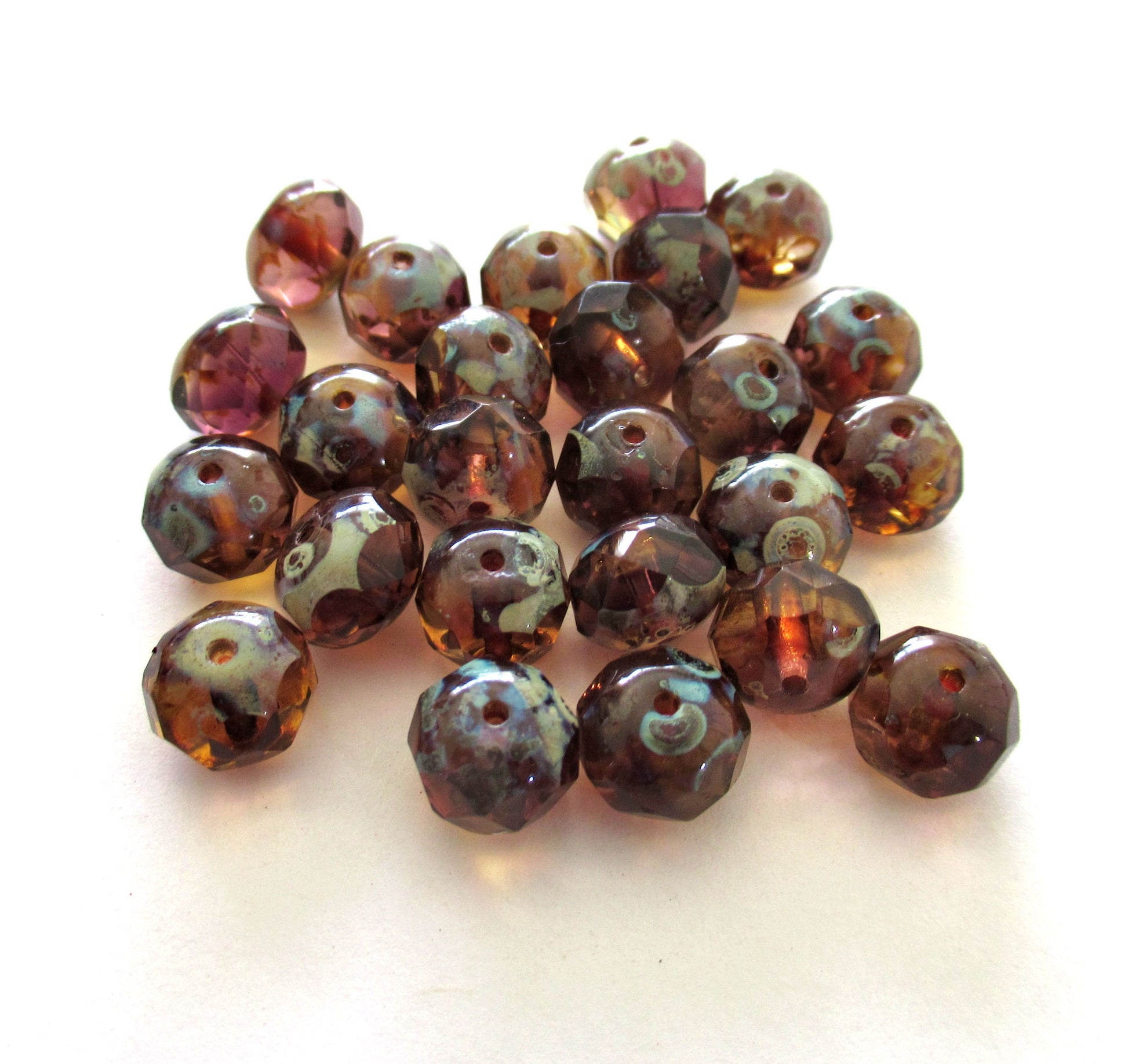 Lot of 25 Czech glass puffy rondelle beads - 6 x 8mm amethyst / purple & champagne picasso color mix faceted rondelles C00072
