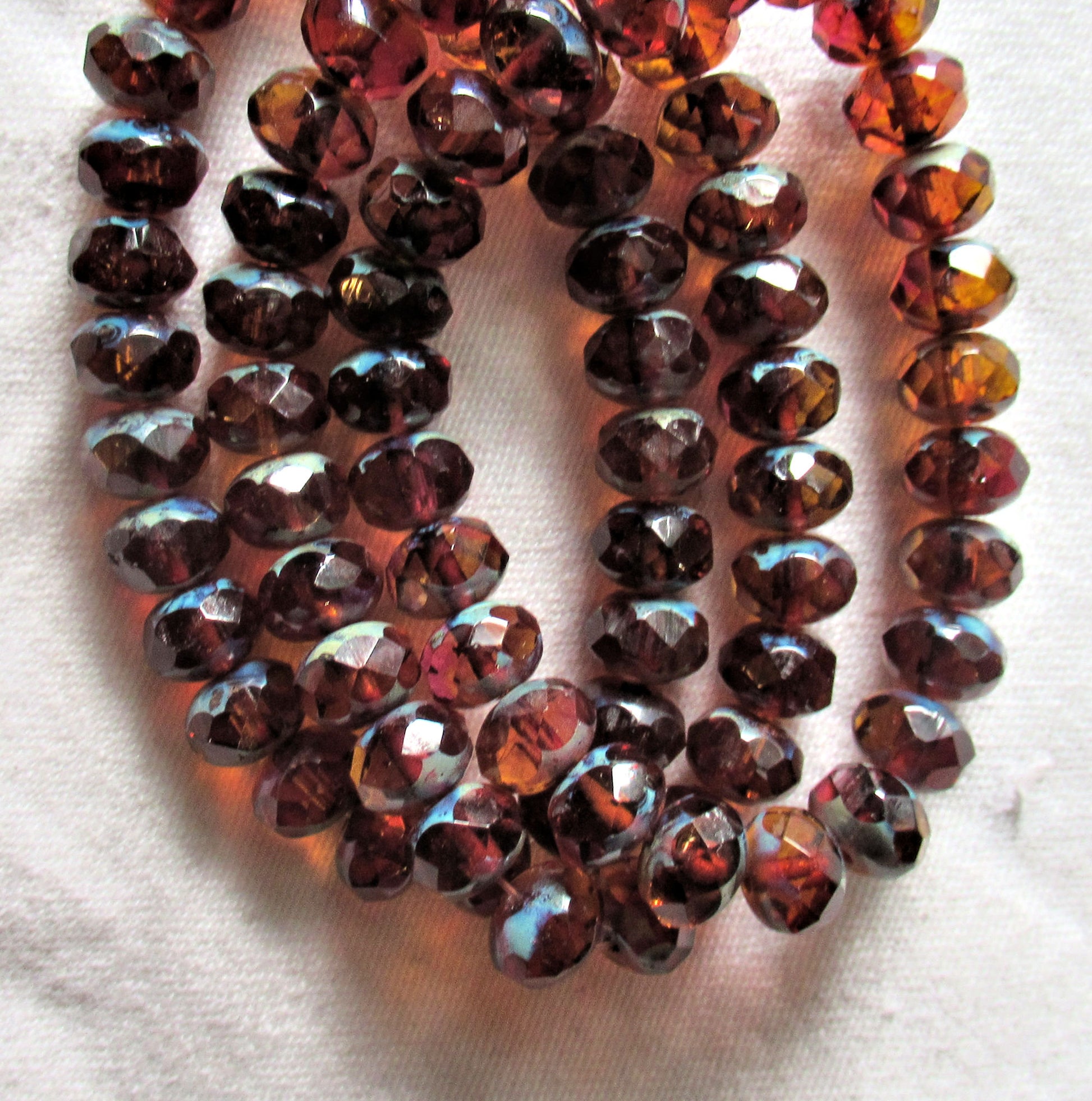 Lot of 25 Czech glass puffy rondelle beads - 6 x 8mm brown / dark smoky topaz & pink color mix faceted rondelles C52325