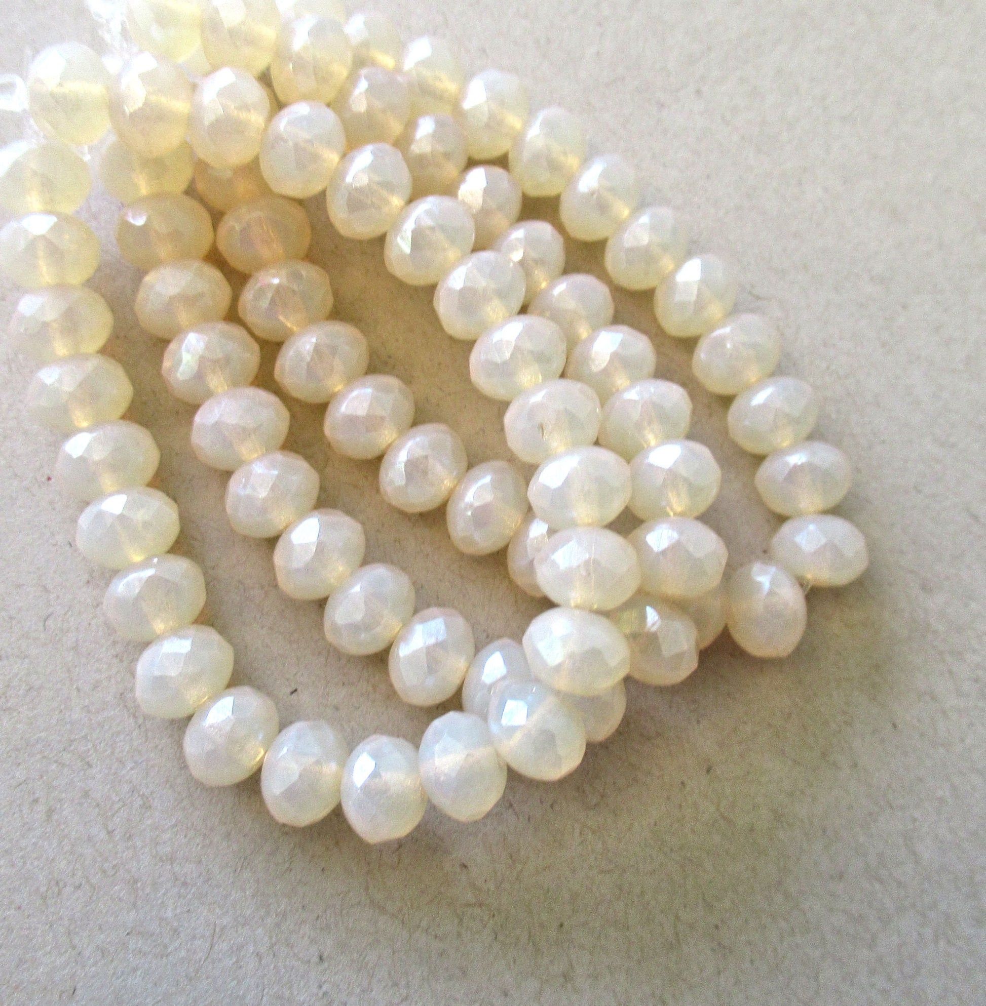 Lot of 25 Czech glass puffy rondelles - translucent beige / off white / milky opalite - 5 x 7mm faceted rondelles 00641