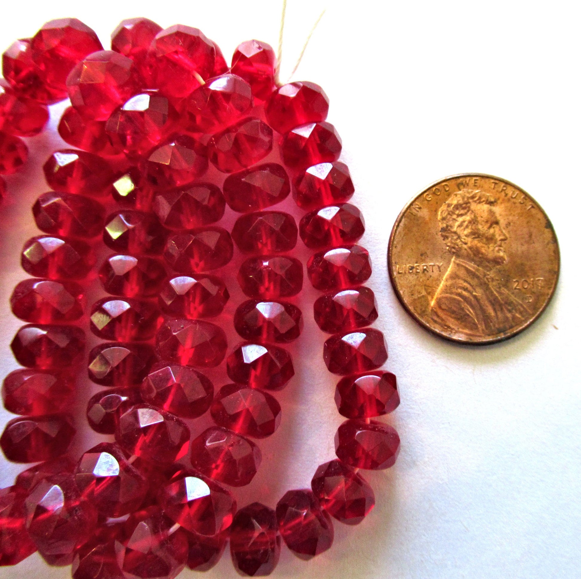 Lot of 25 Czech glass puffy rondelles - transparent ruby red / light garnet faceted rondelle or donut beads - 5 x 7mm - C00001