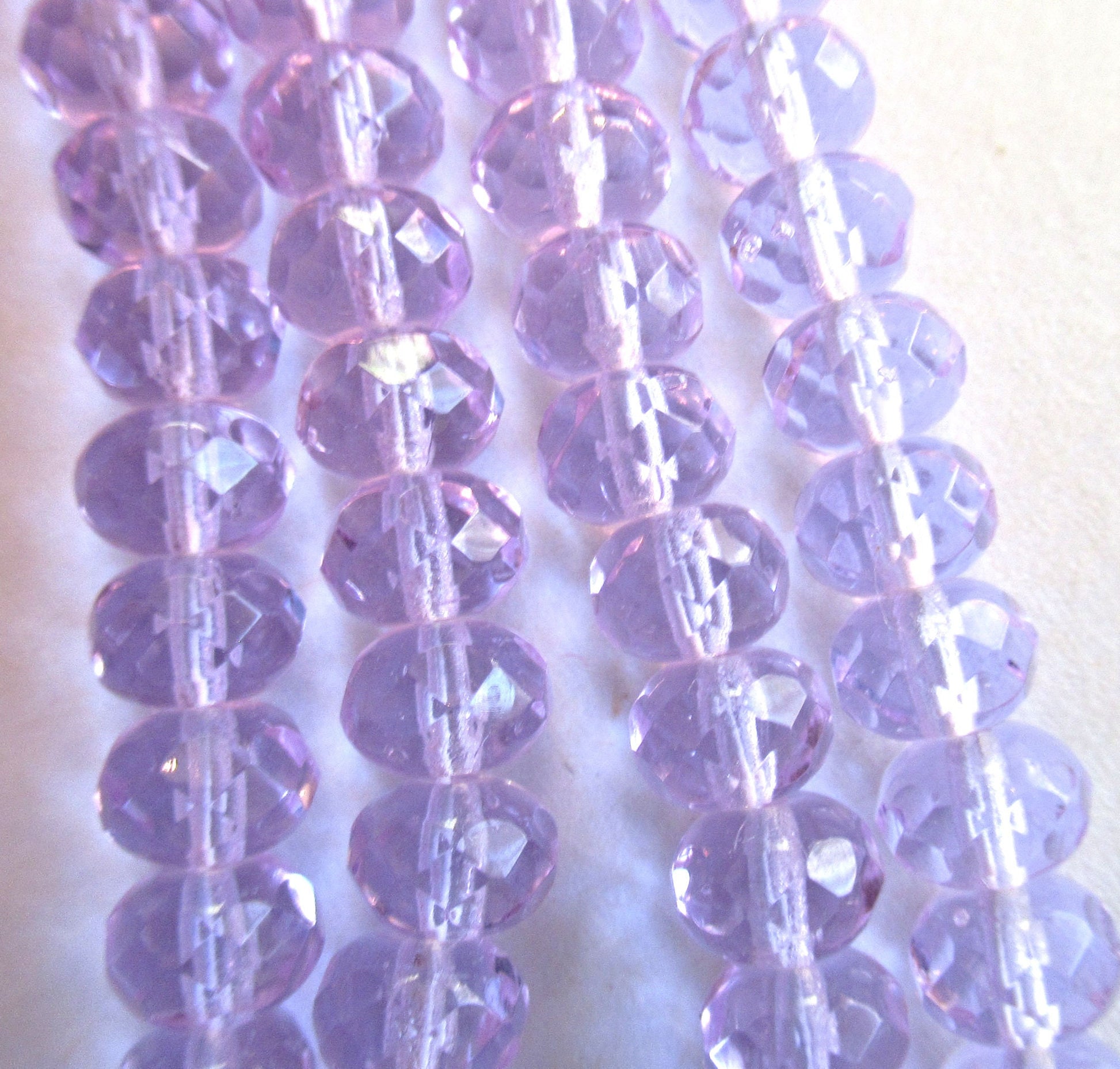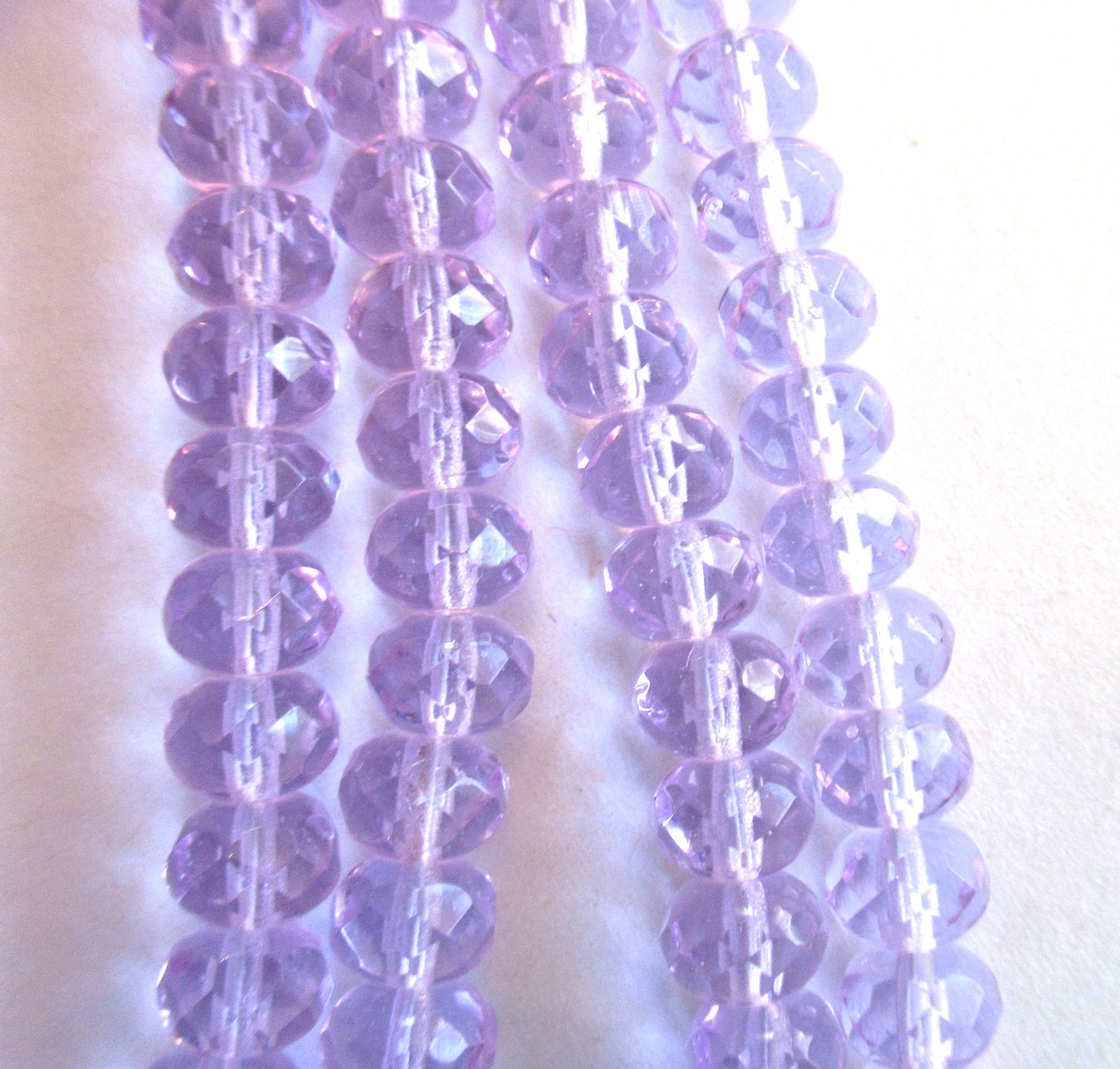 Lot of 25 faceted puffy rondelle or donut beads - 5 x 7mm transparent alexandrite or lavender beads - C0055