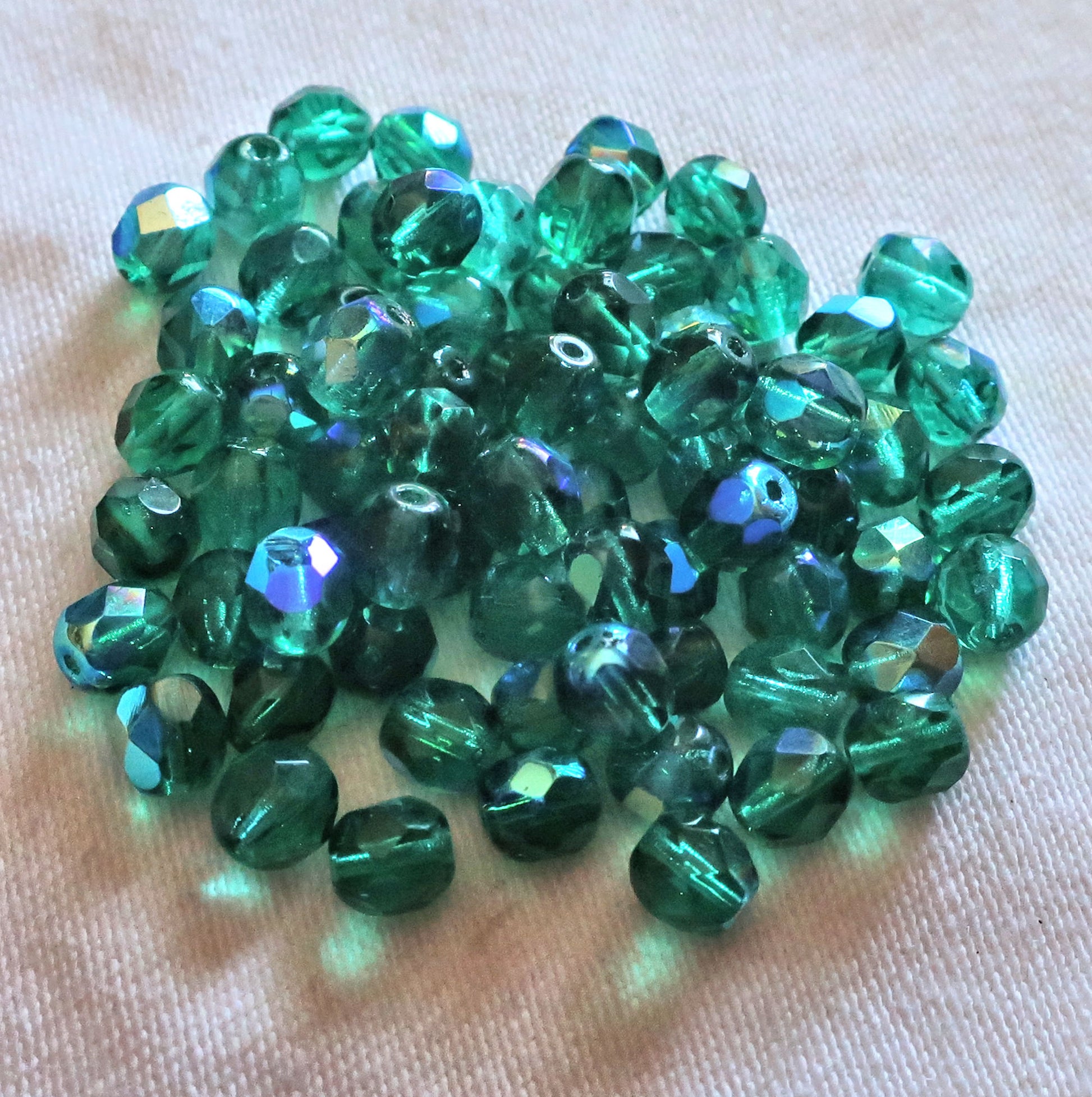 Lot of 25 viridian, teal blue green AB Czech glass beads - 6mm fire polished, faceted round beads C7425
