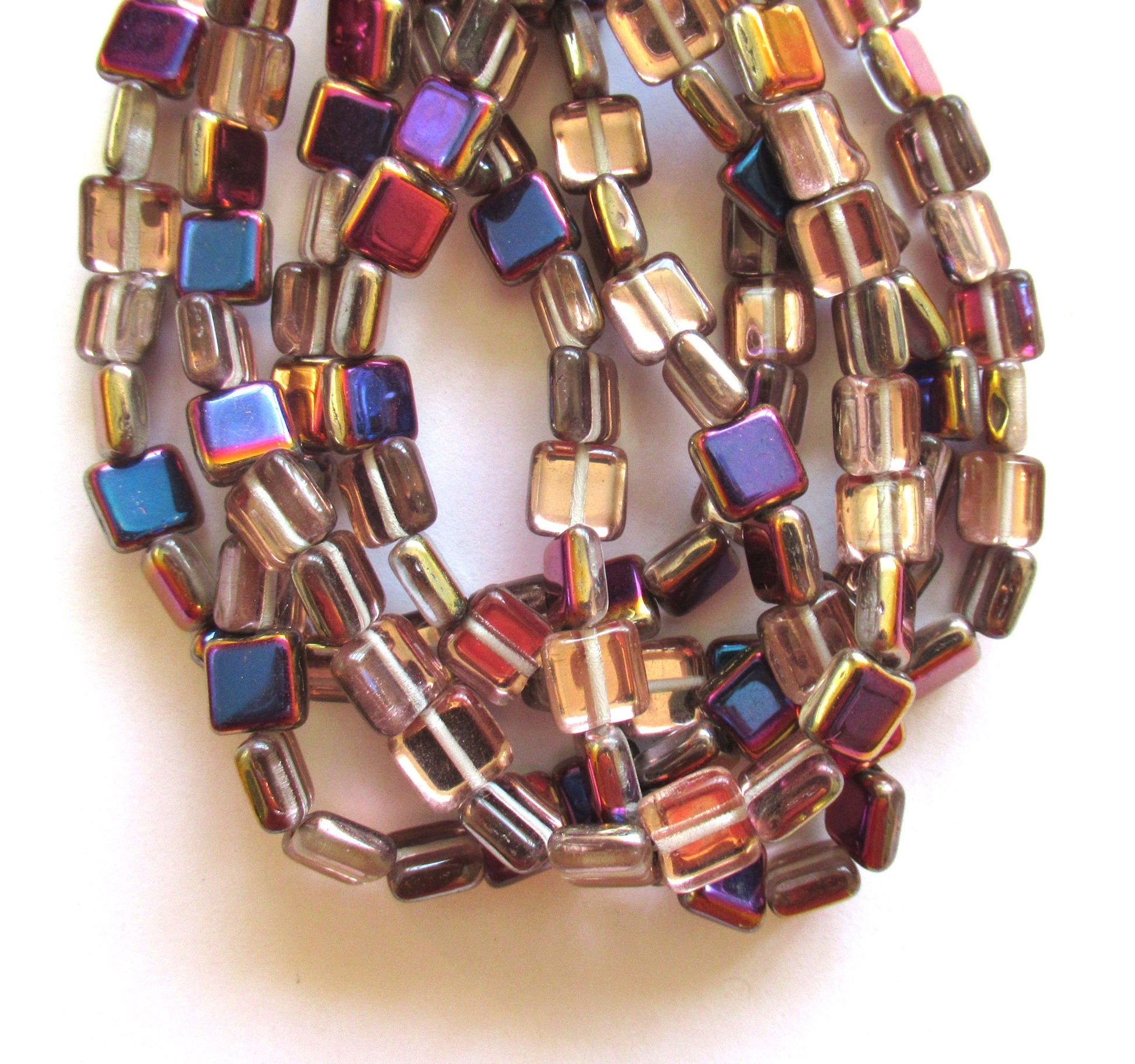 Lot of 30 8mm one hole flat square Czech glass beads - apollo gold vitral beads C0085