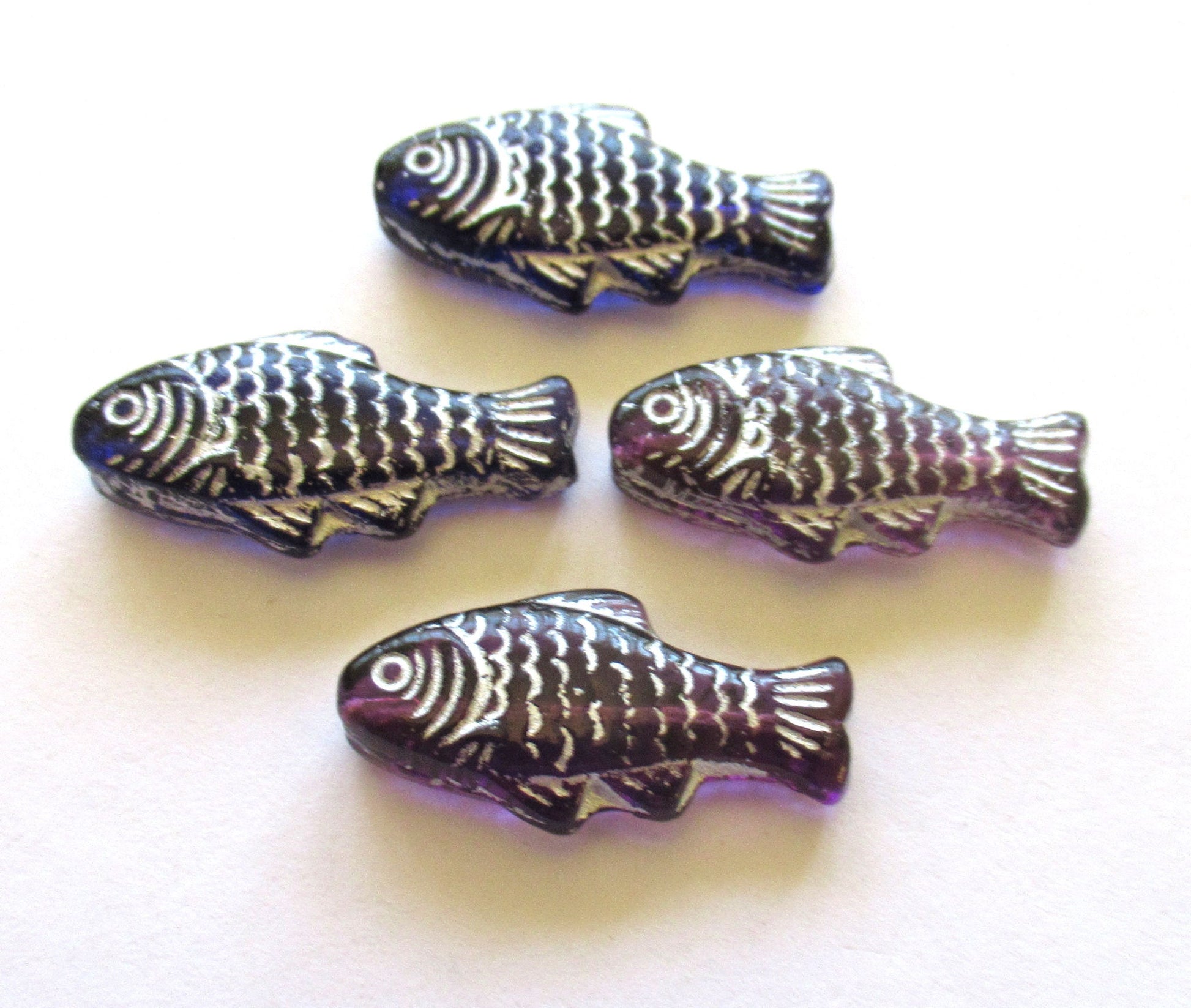 lot of 4 large Czech glass fish beads - 25 x 14mm transparent amethyst purple fish with a silver wash - C0057