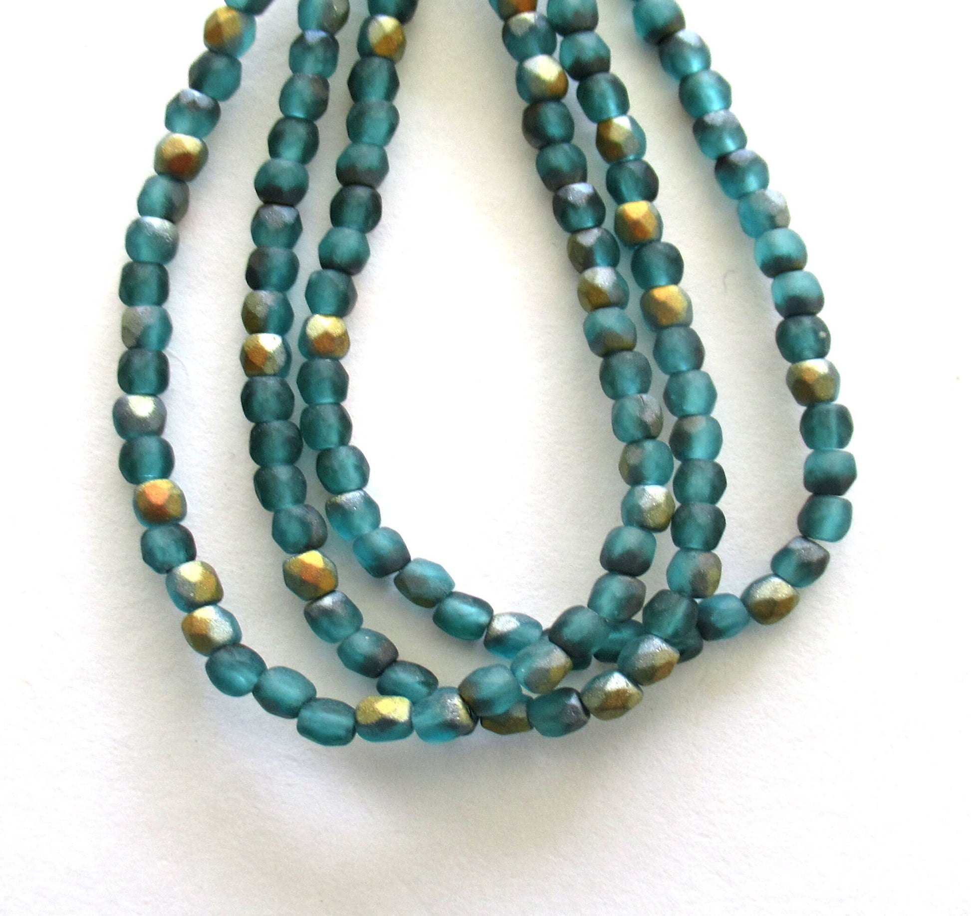 This is a set of 50 3mm matte viridian or teal blue green AB Czech glass beads.