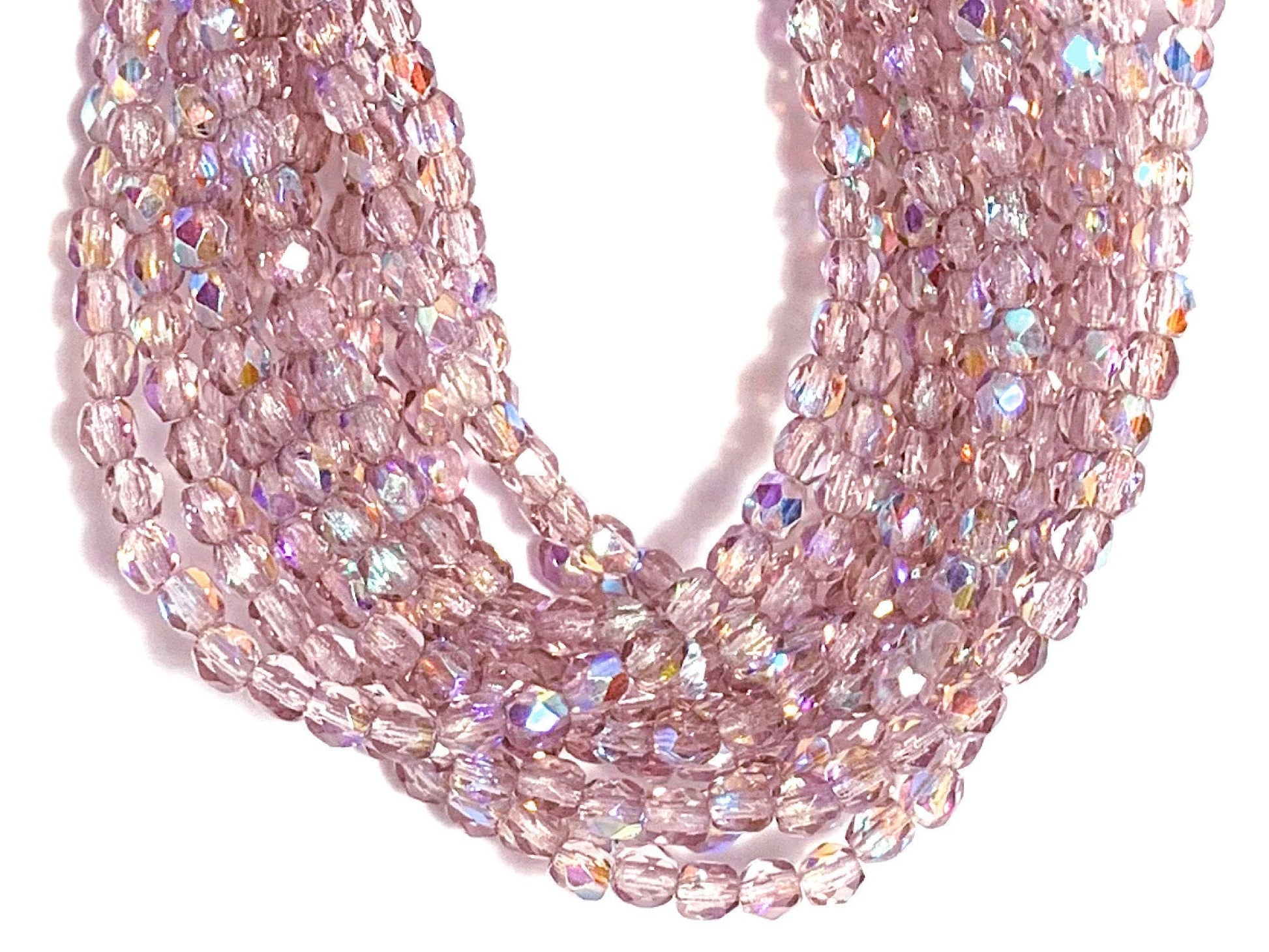 50 3mm light amethyst purple AB Czech glass beads, round, faceted fire polished beads C0095