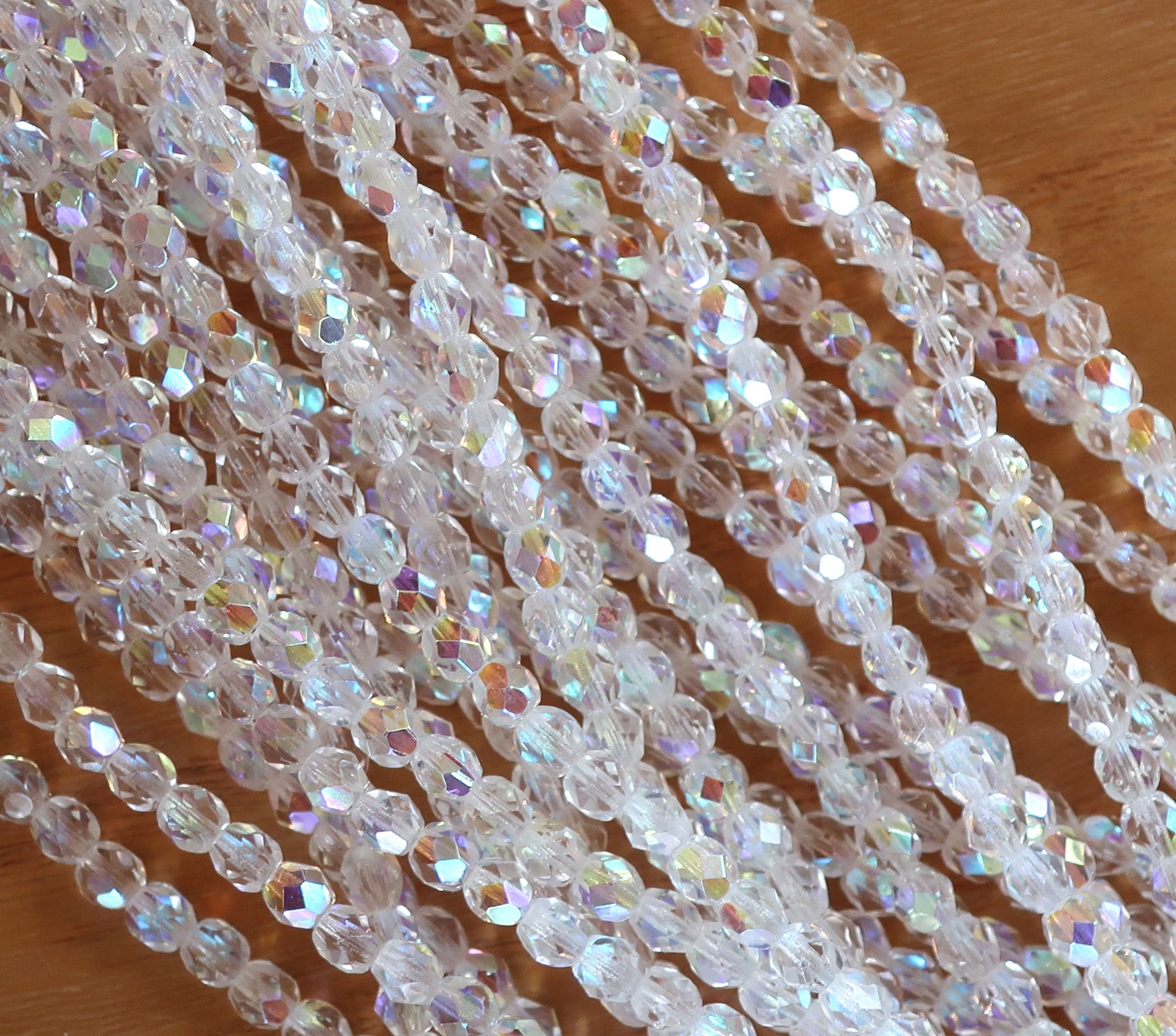 Set of 50 4mm Crystal AB faceted, fire polished round Czech glass beads.