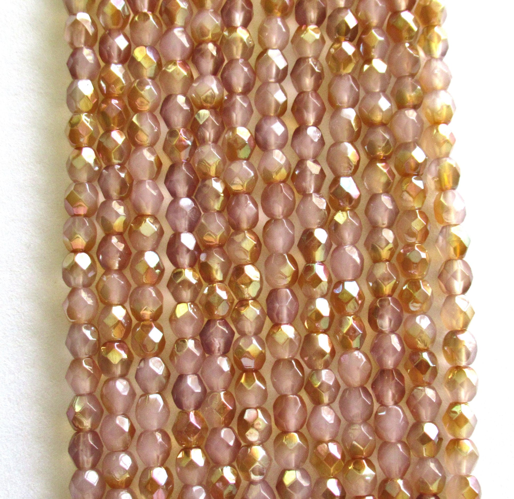 Lot of 50 4mm Czech glass beads - light Milky Pink Celsian - round faceted fire polished beads - C0096