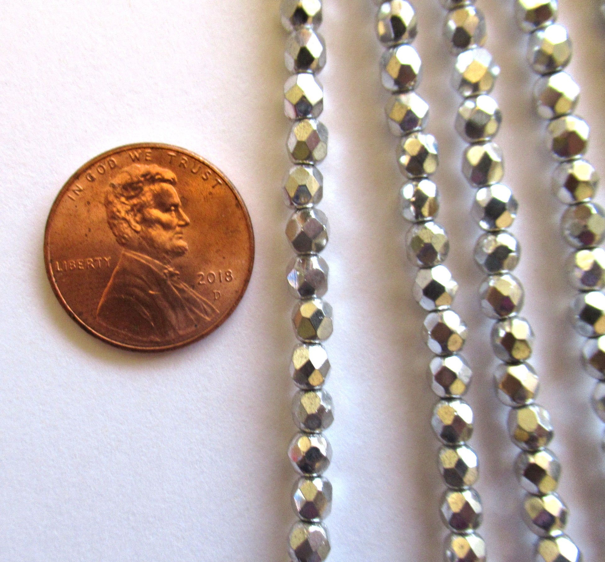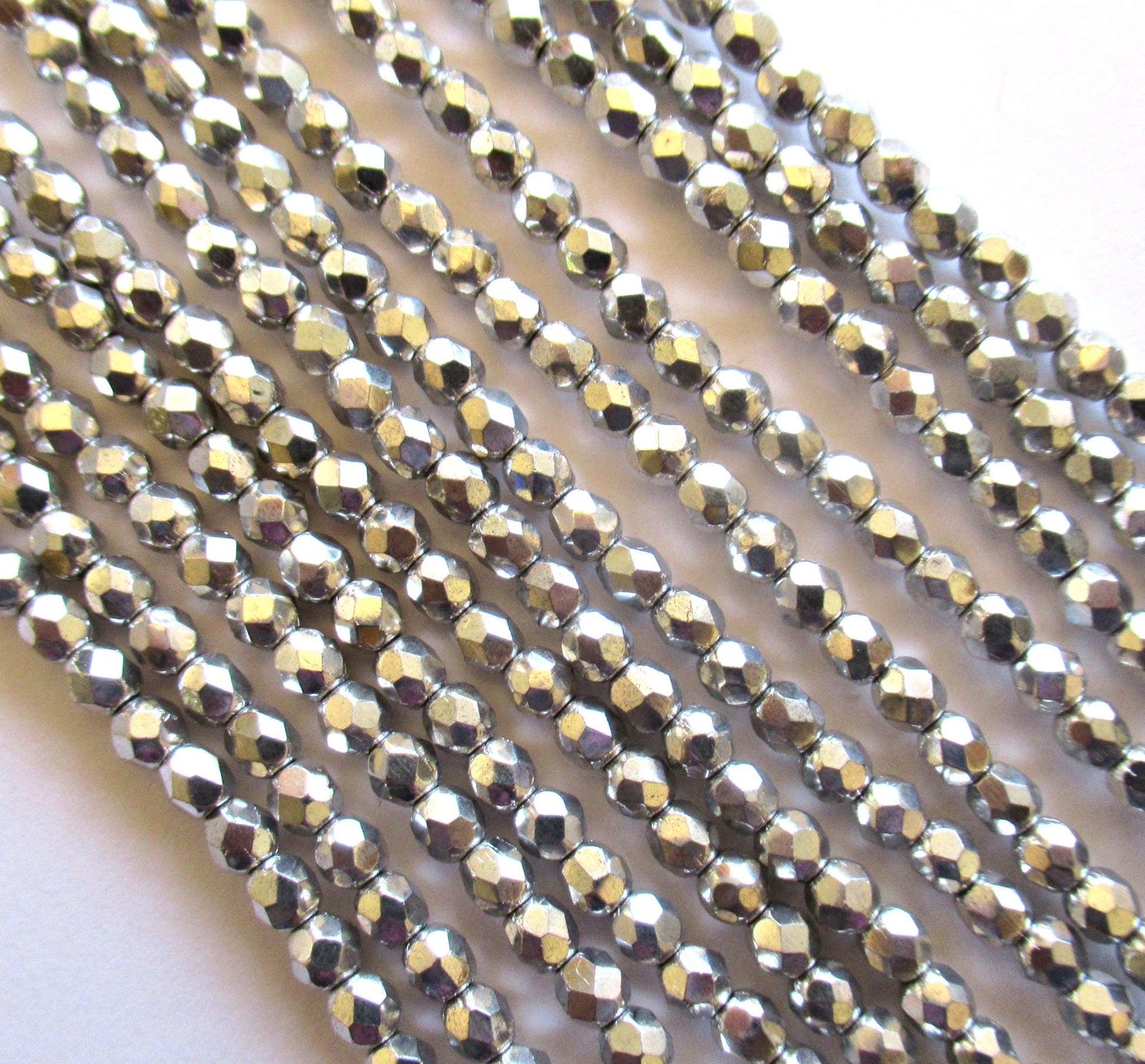 50 4mm metallic silver Czech glass beads - round, faceted fire polished beads C0027