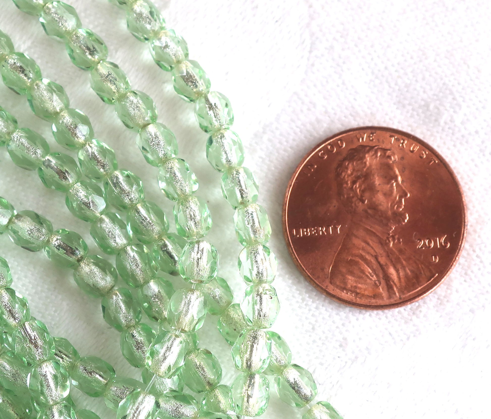 Lot of 50 4mm Peridot, light green, silver lined Czech glass beads, fire polished faceted round glass beads.