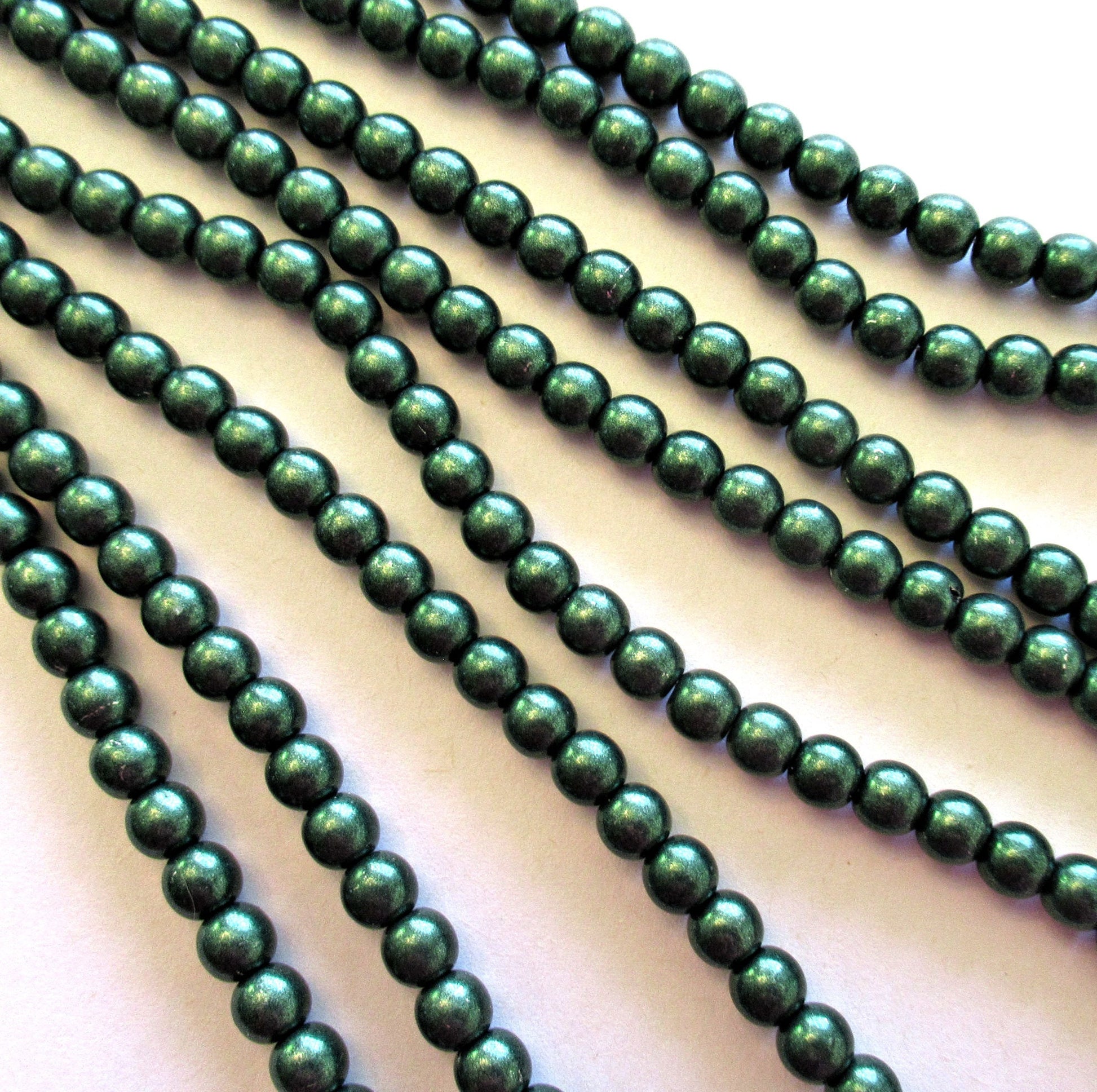 Lot of 50 6mm Czech glass druk beads - opaque metallic Saturated Martini Olive Green smooth round druks - C0037