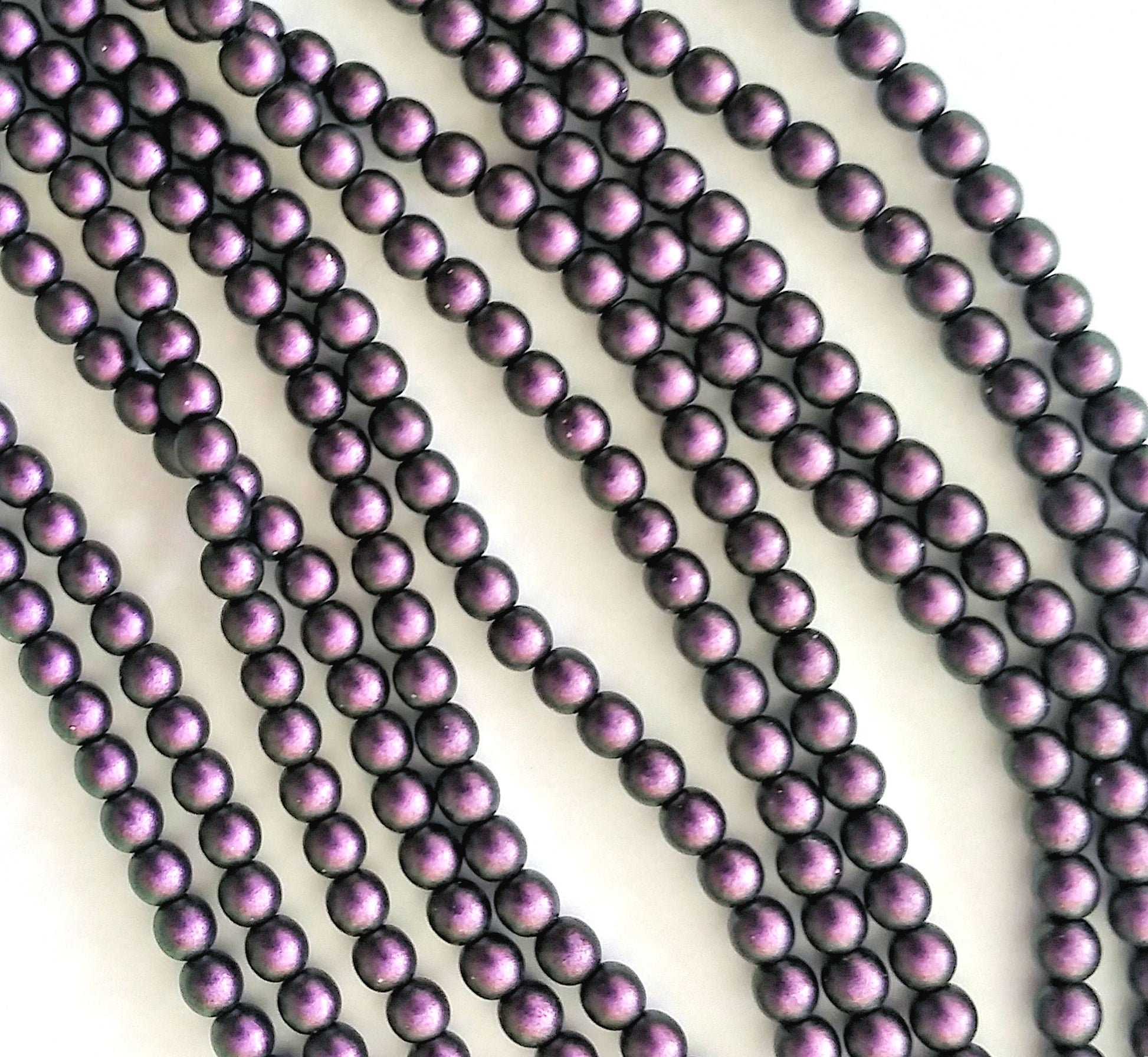 Lot of 50 6mm Czech glass druk beads, Polychrome Black Currant, deep purple smooth round druks with a mette finish C81101