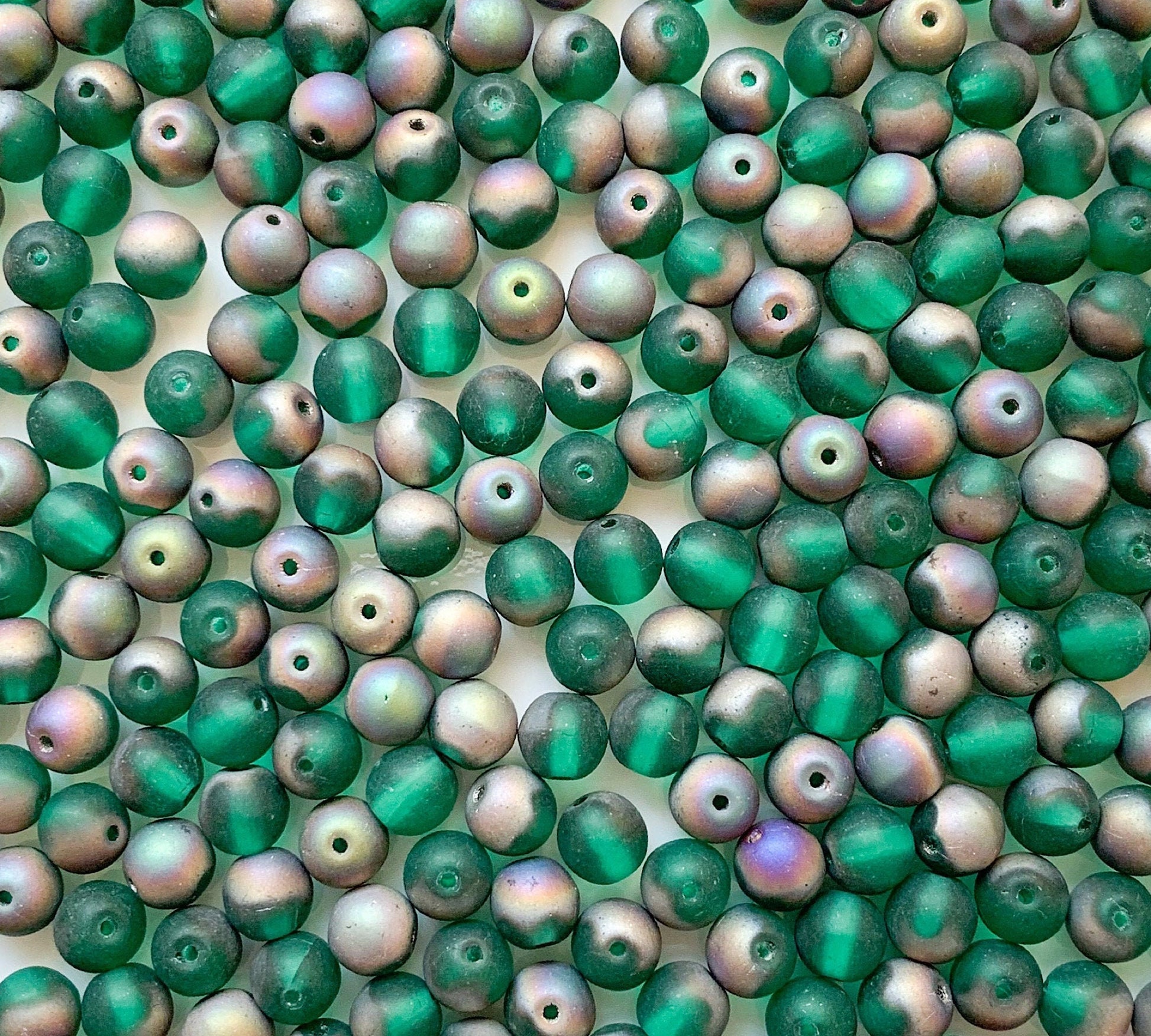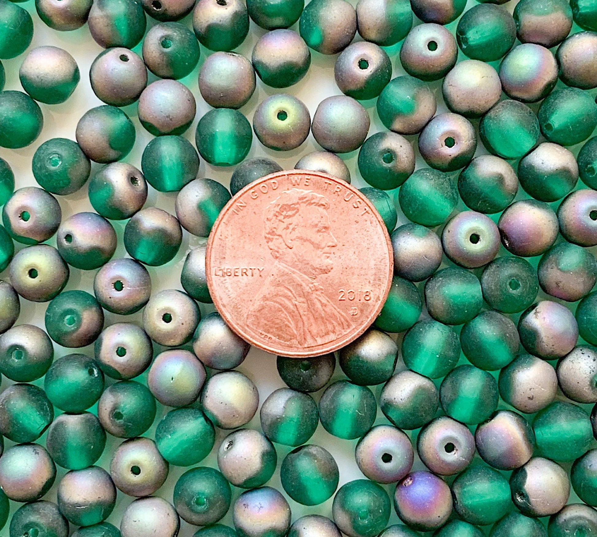 Lot of 50 6mm Czech glass druks, matte teal green viridian smooth round druk beads C0092