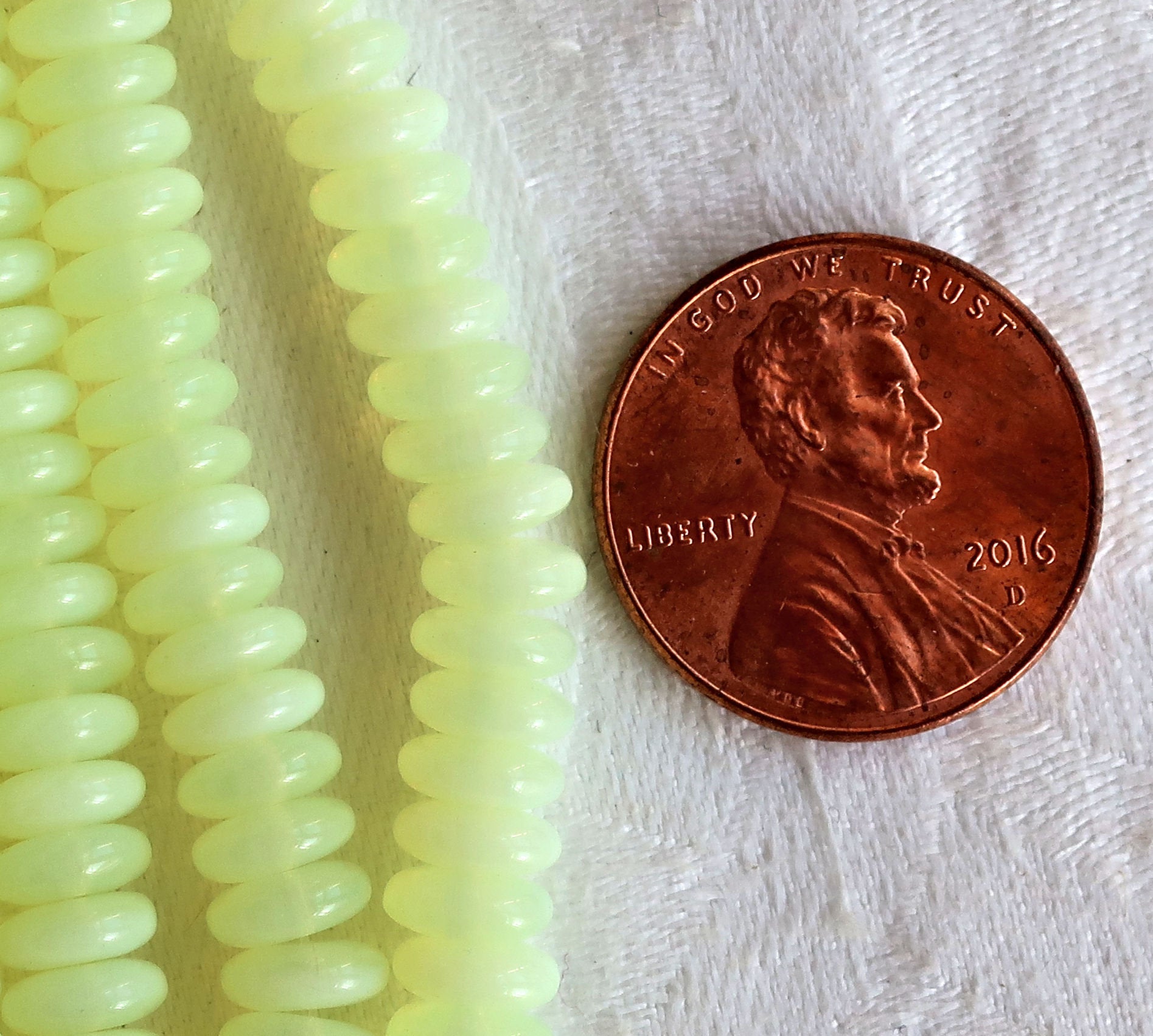 Lot of 50 6mm Czech glass rondelle beads, milky jonquil yellow flat spacers or rondelles C0601