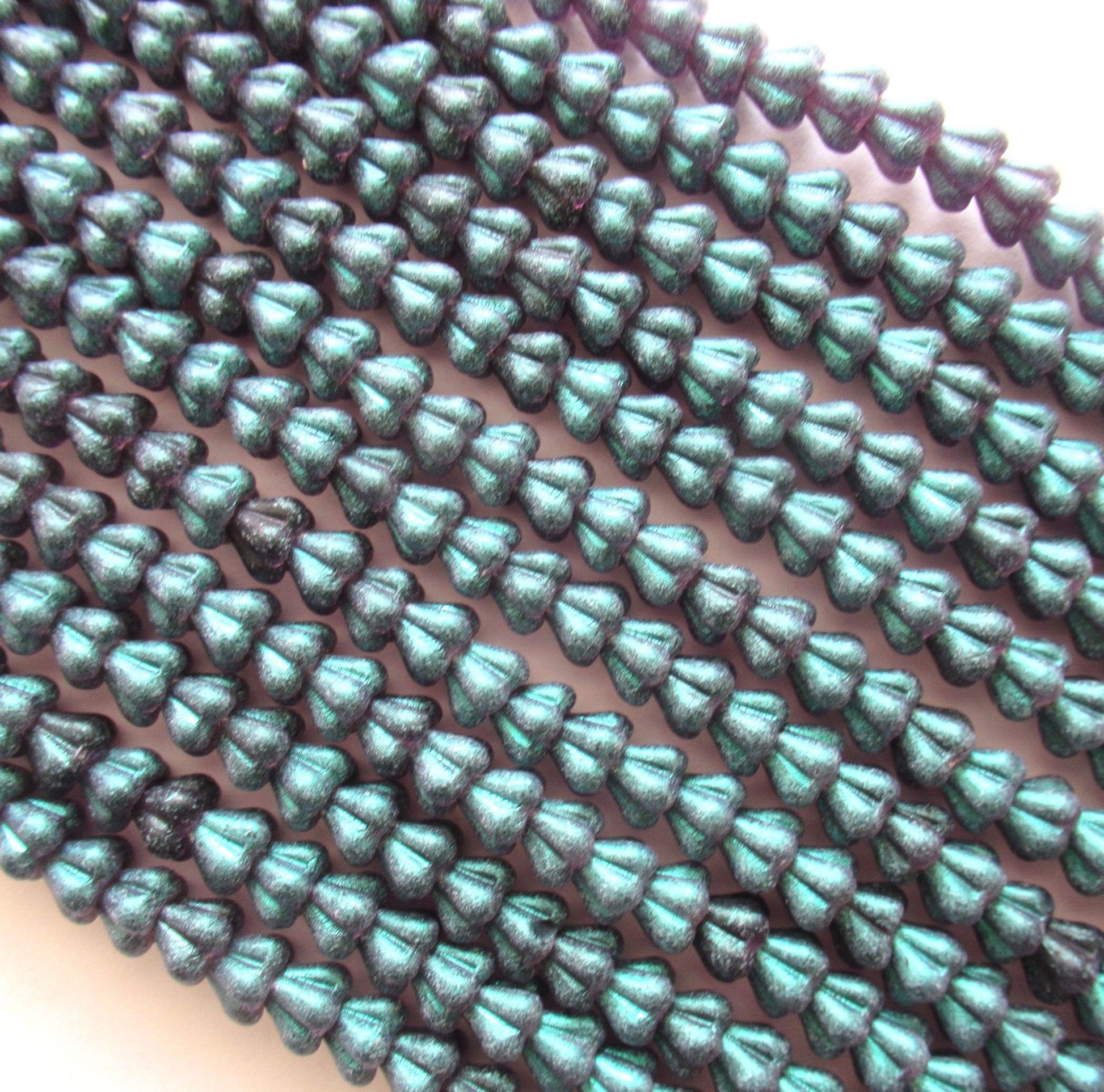 Lot of 50 6mm x 4mm Czech glass baby bell flower beads - green glow tanzanite flower beads - 0069
