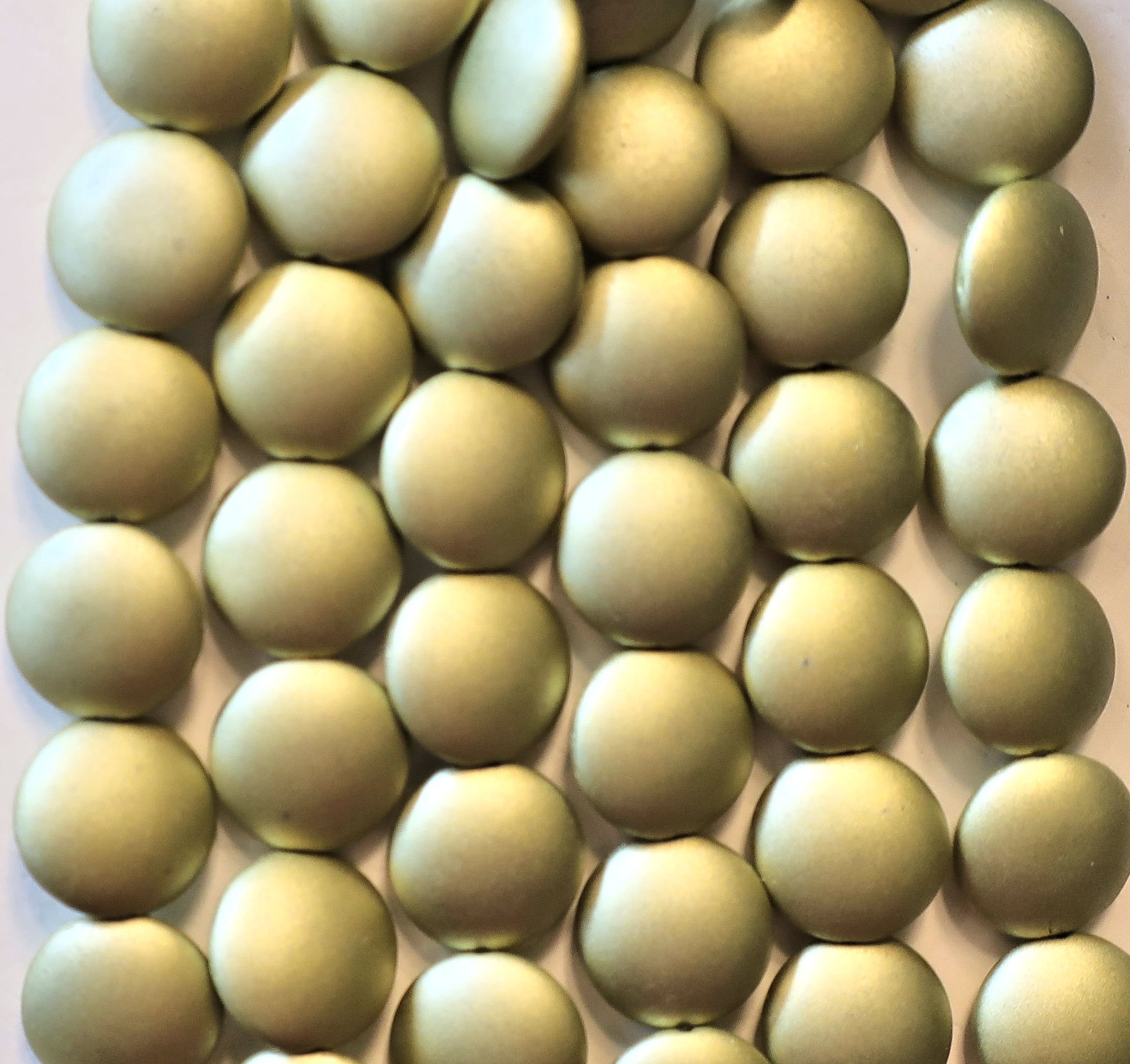 Lot of 8 Czech glass coin beads - 14mm puffy pillow beads - Satin Metallic Chartreuse Gold - C40101