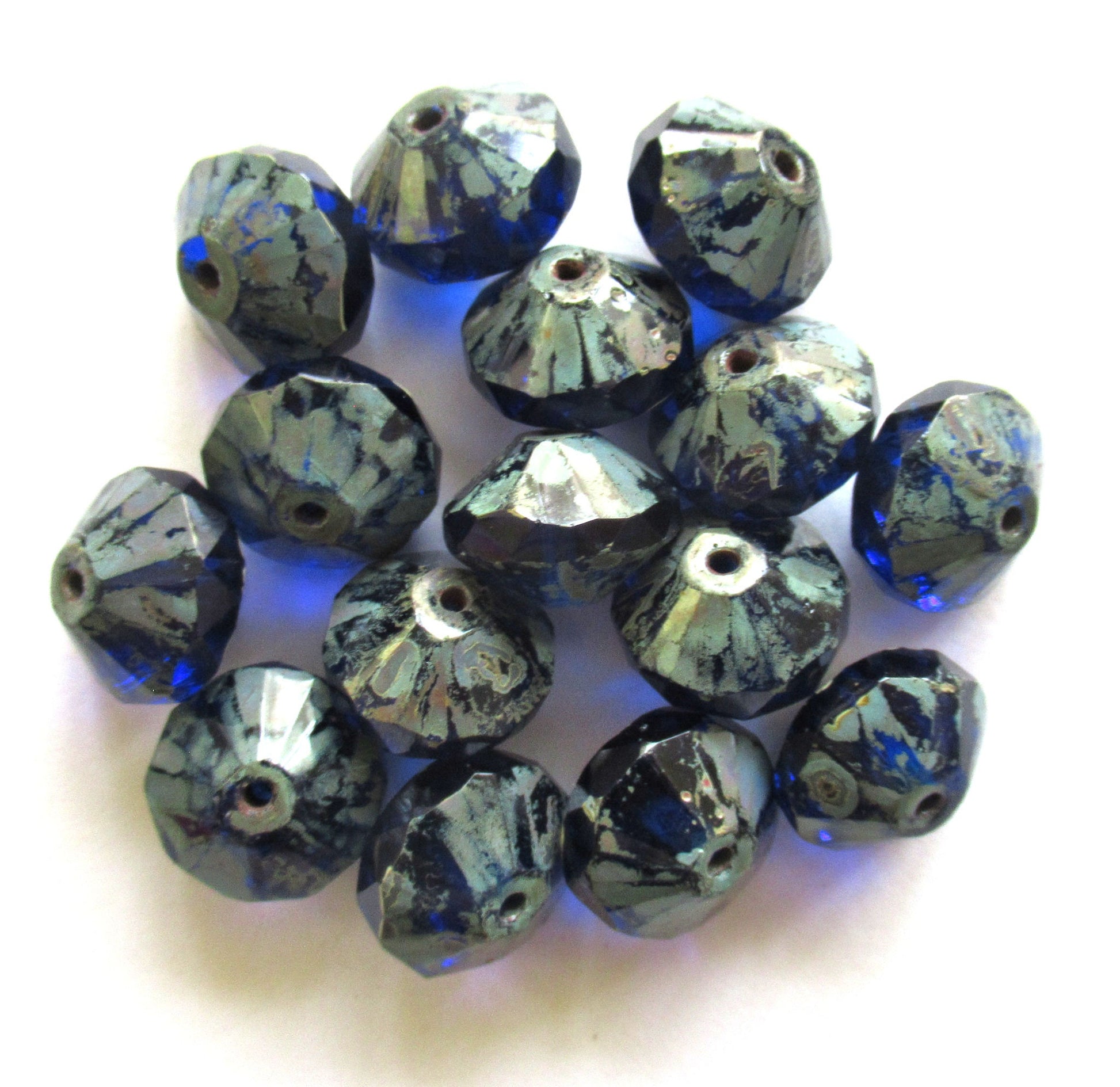 Lot of five Czech large glass faceted rivoli saucer beads - 9 x 13mm cobalt blue w/ picasso finish - chunky rustic earthy beads C00822