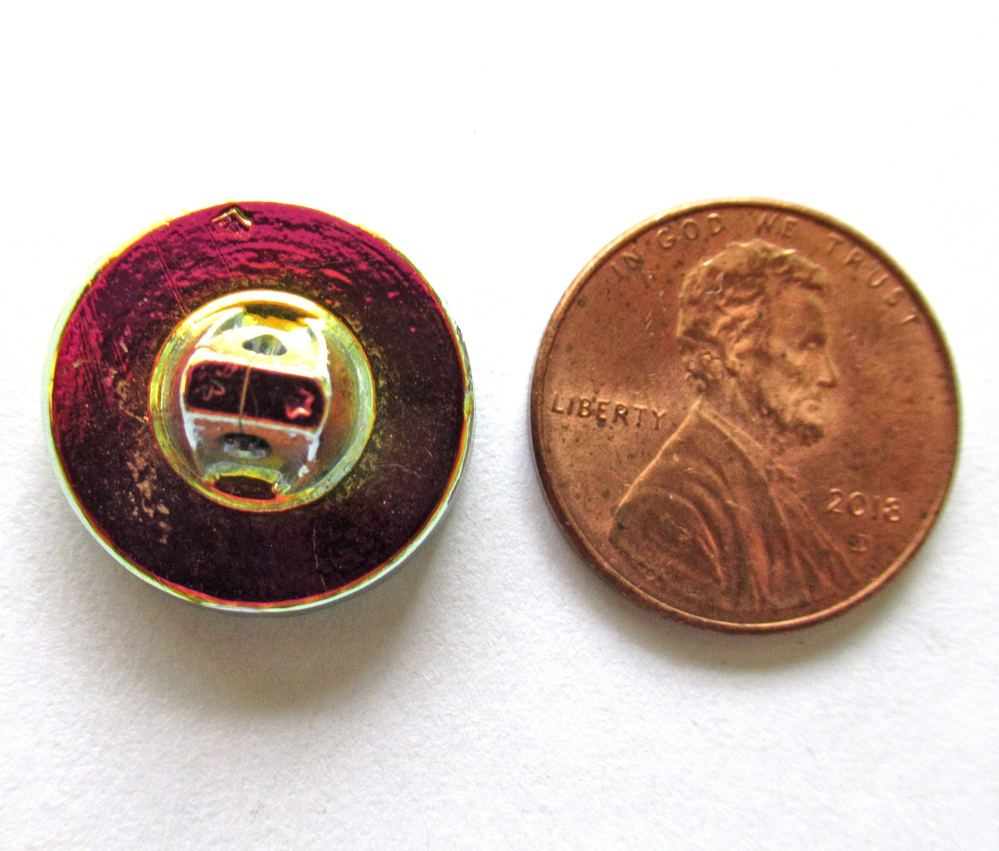 One 18mm Czech glass button - orange & pink iridescent snowflake with a turquoise wash - decorative shank button 00082