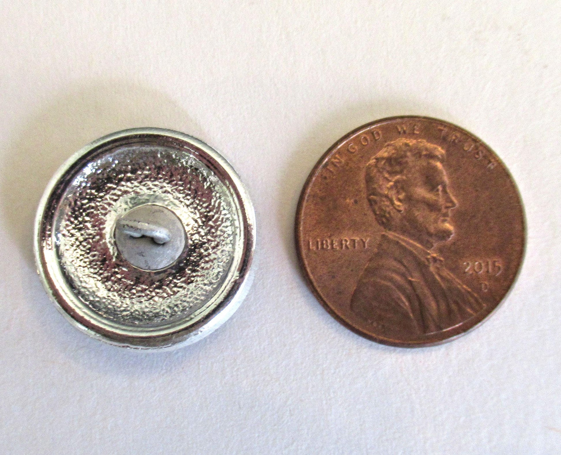 One 18mm Czech glass dragonfly button - iridescent pink blue & green glass with a silver dragonfly - decorative shank buttons - 00562