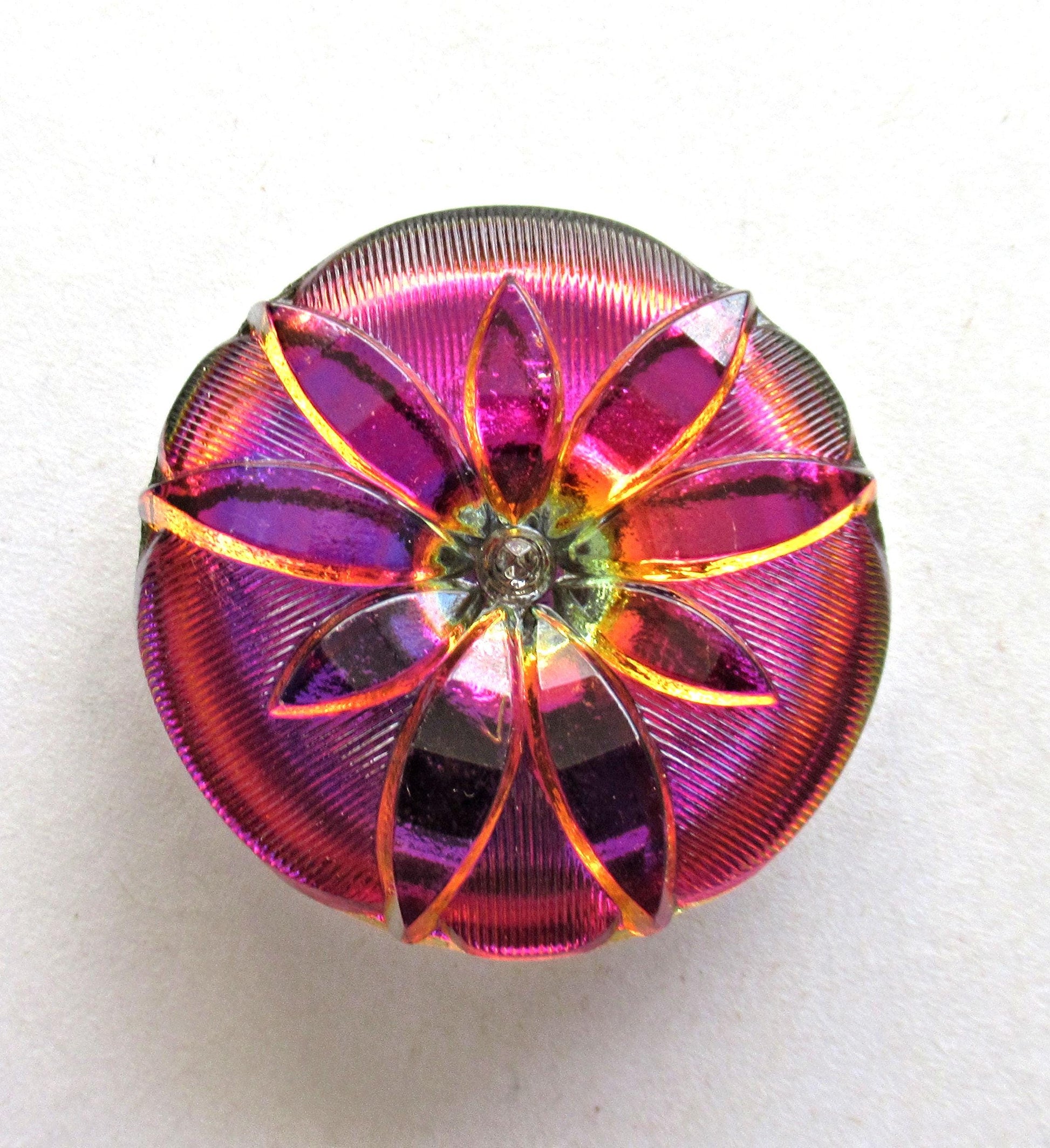 One large Czech glass flower button - iridescent pink & orange button - 35mm - decorative shank button - 00083