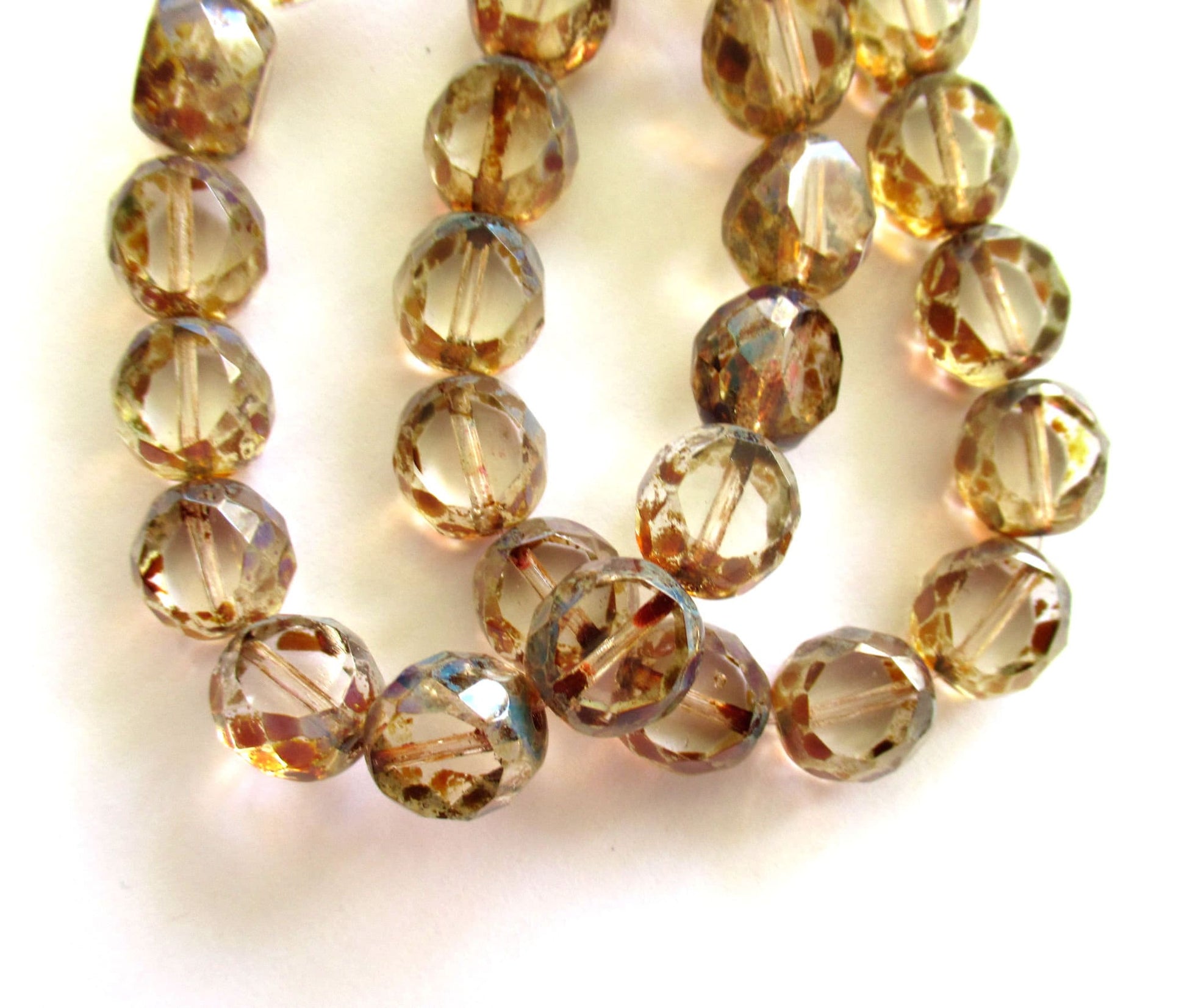 Six 12mm round dual faceted table cut Czech glass beads - crystal clear picasso 2 cut window beads - chunky statement beads 00131