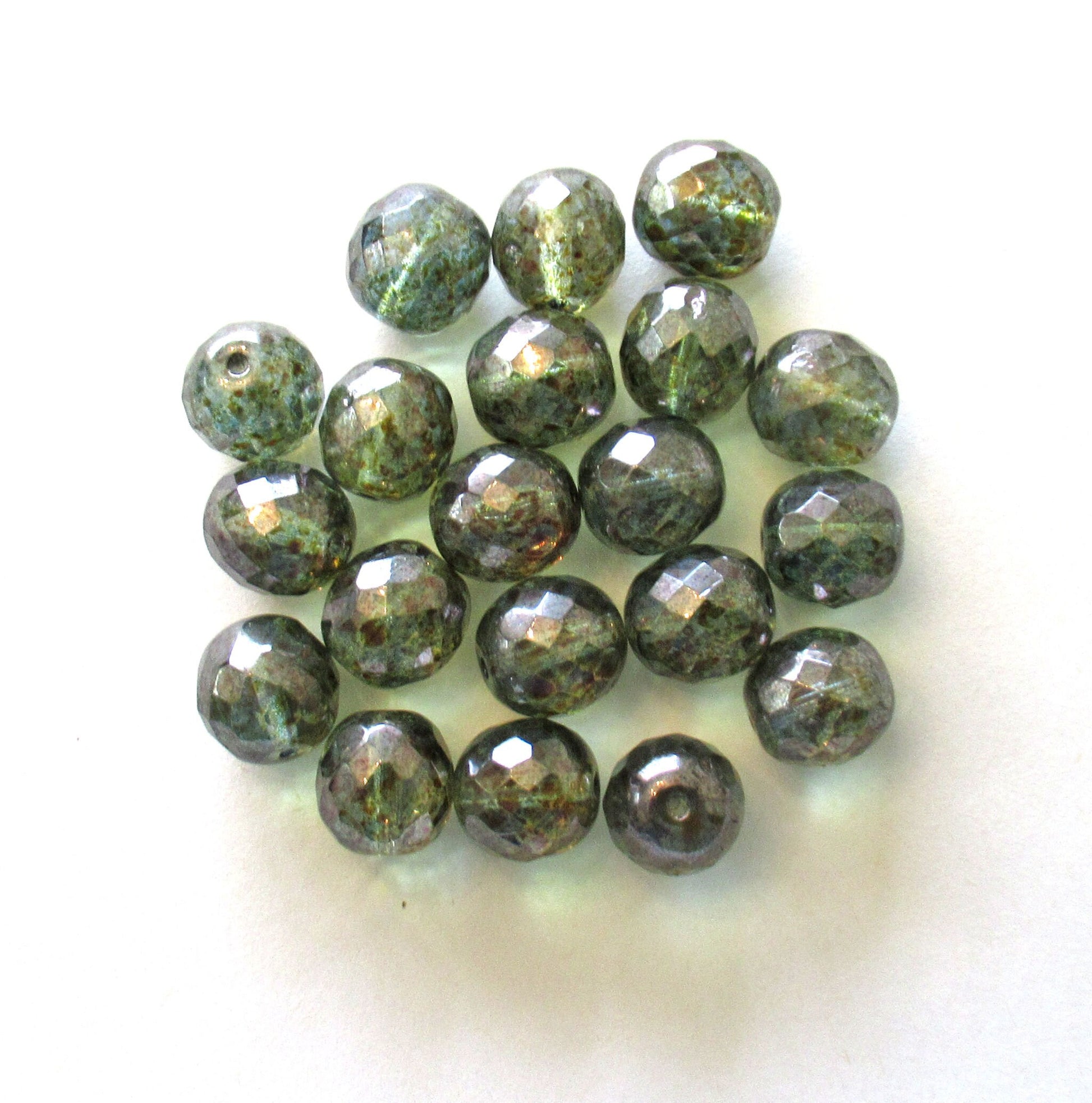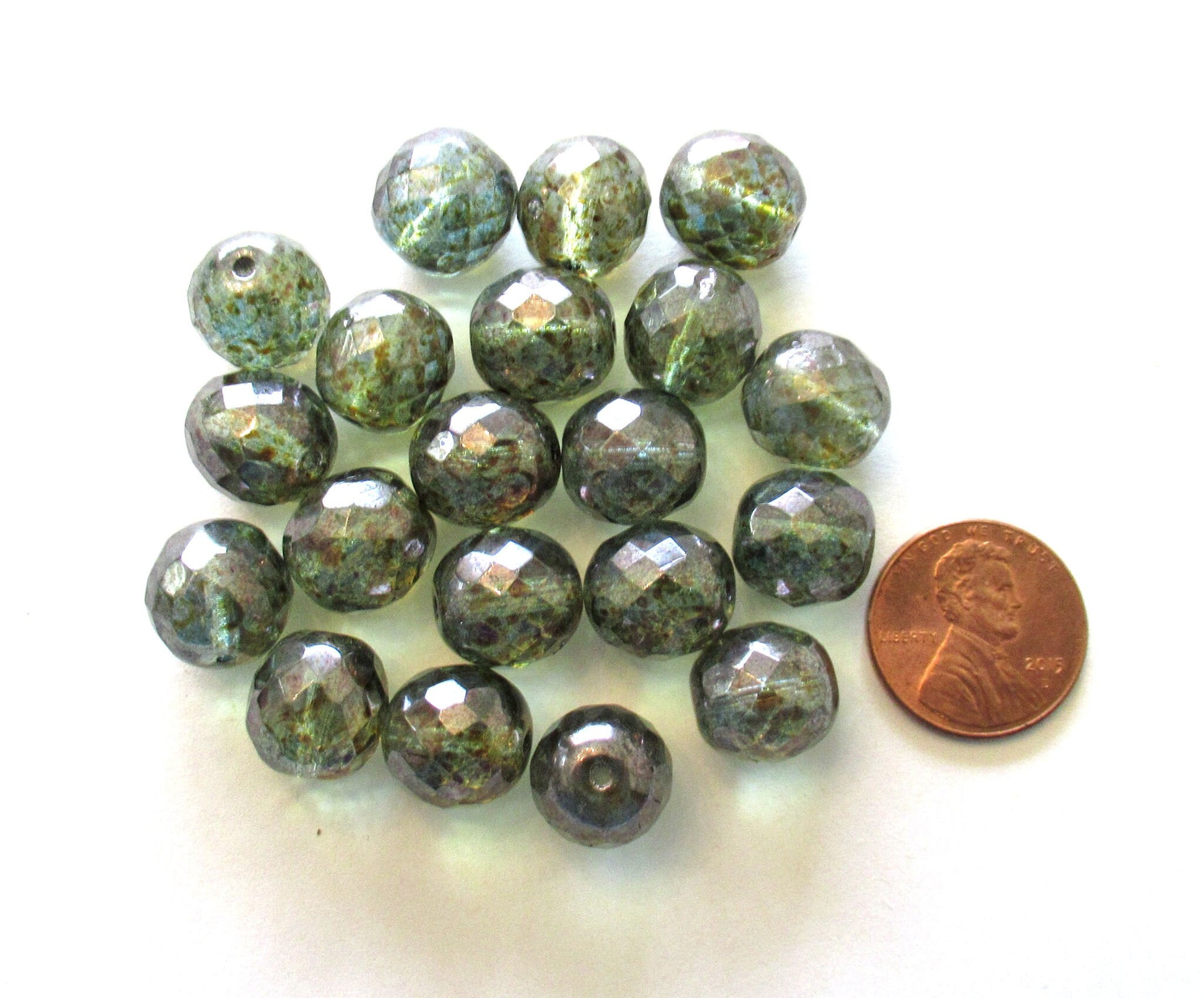 Ten 12mm Czech glass beads - lumi green faceted fire polished round beads C00451