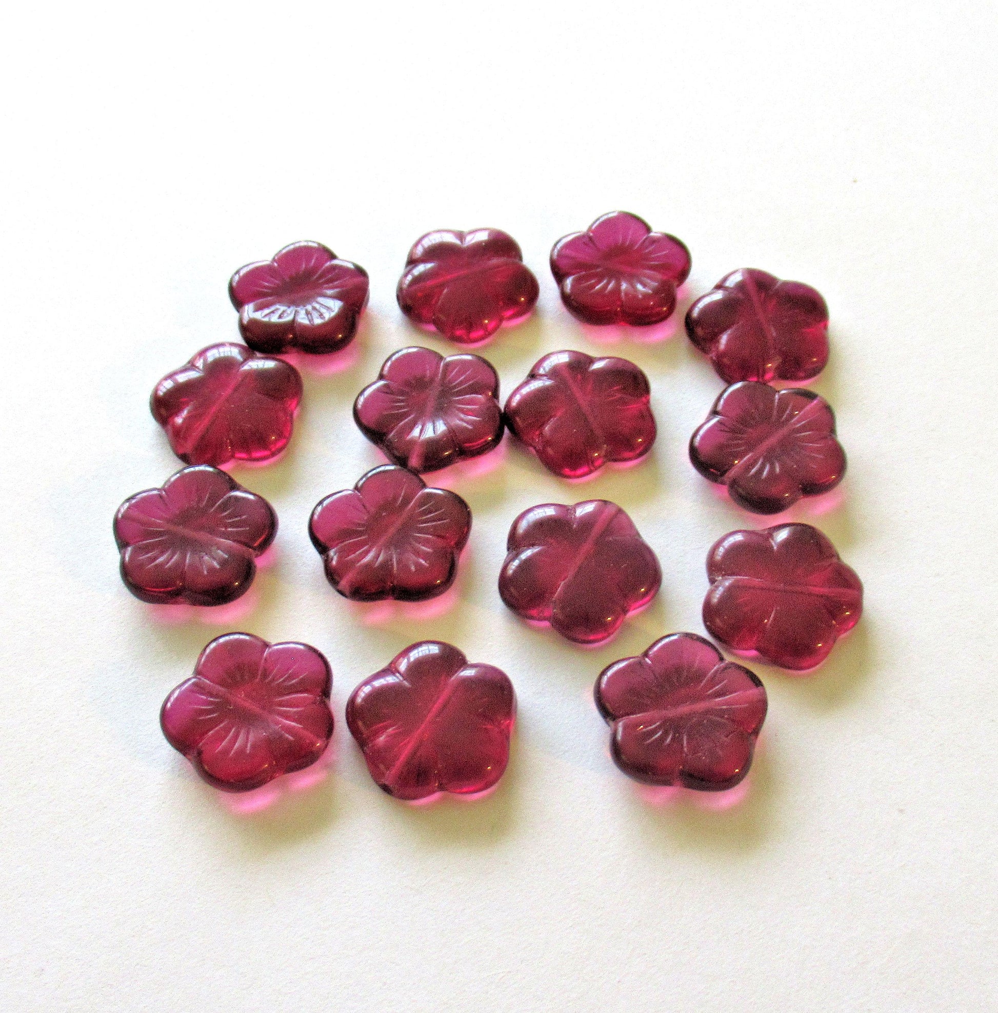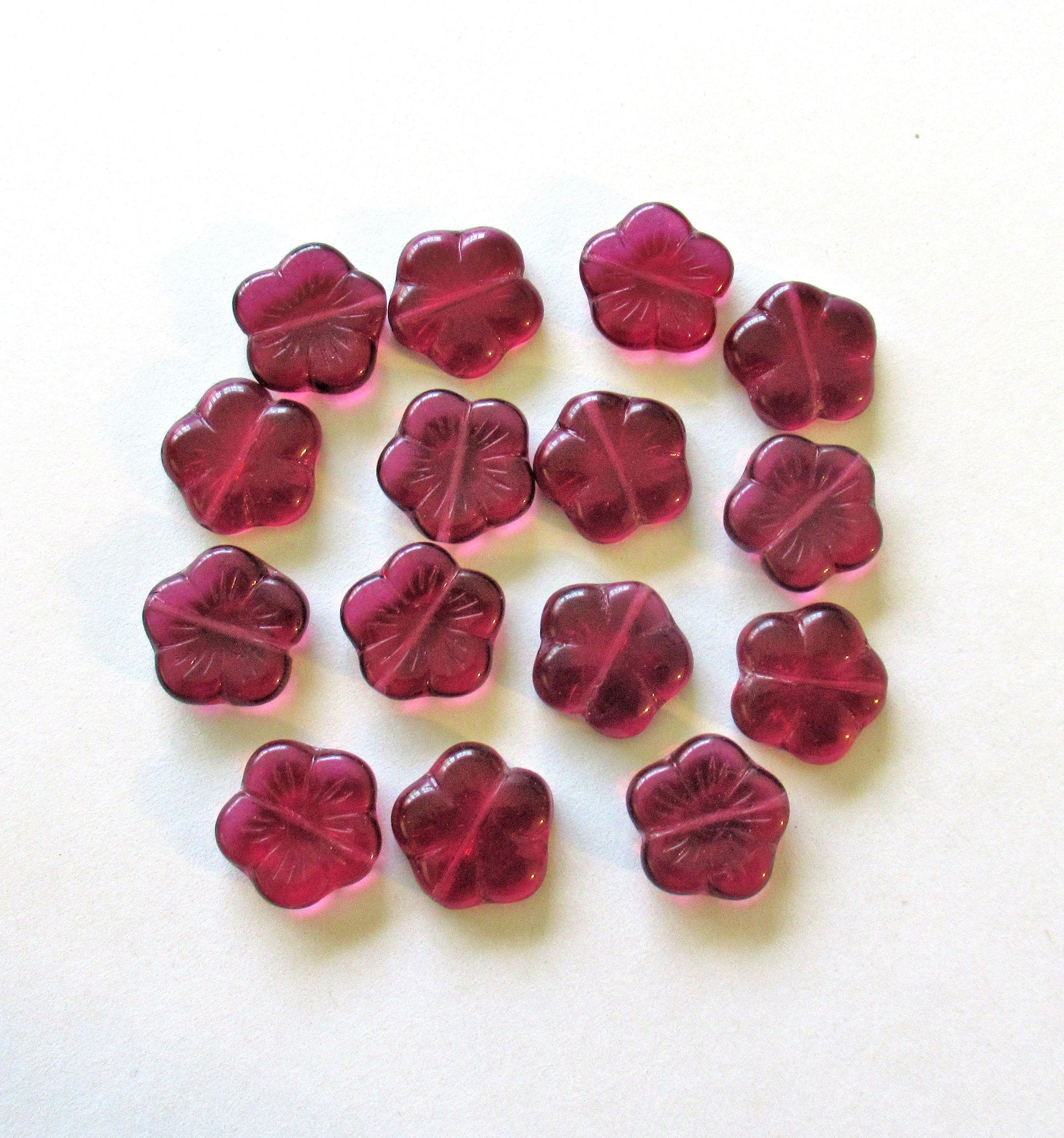 Ten 14mm Czech glass flower beads - transparent fuchsia pink - pressed glass floral beads - C0881