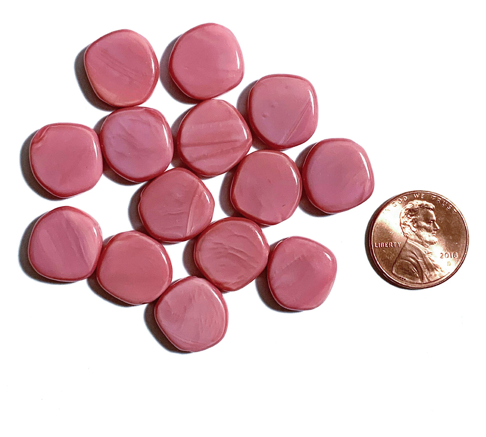 Ten 15mm Czech glass asymmetrical coin or disc beads - opaque pink silk beads - C0019