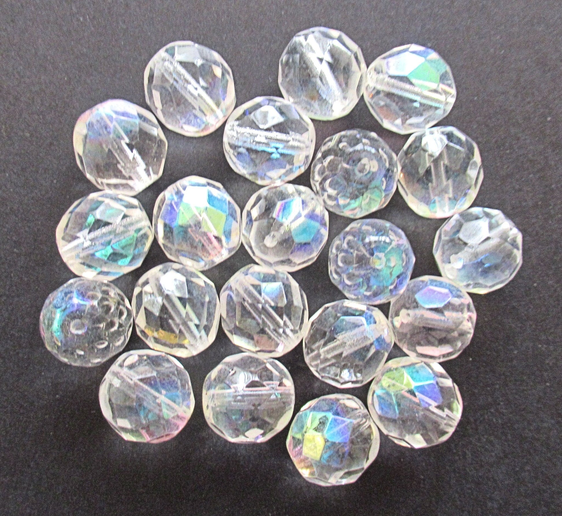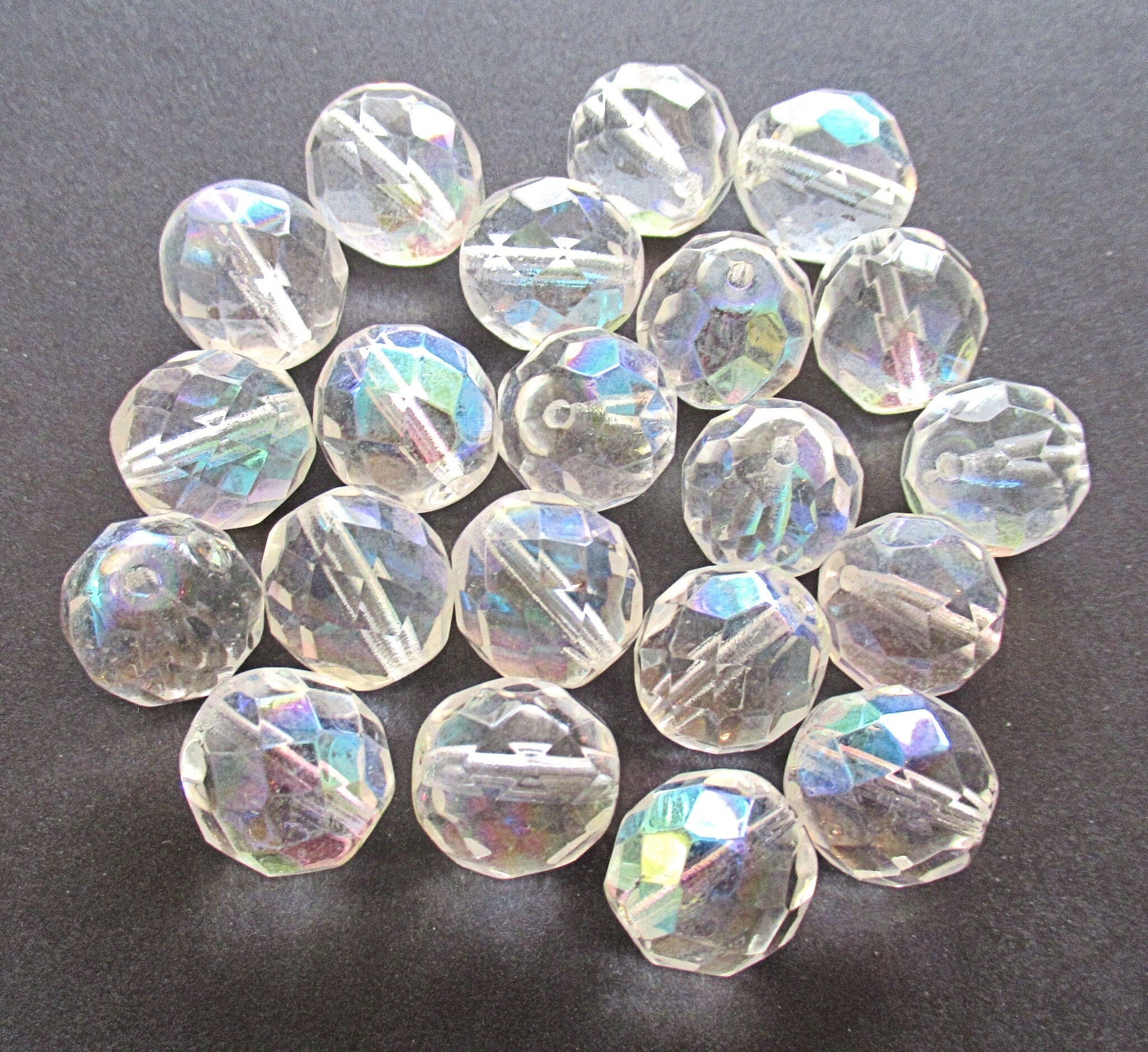 Ten Czech glass fire polished faceted round beads - 12mm crystal clear beads with an ab finish C0038