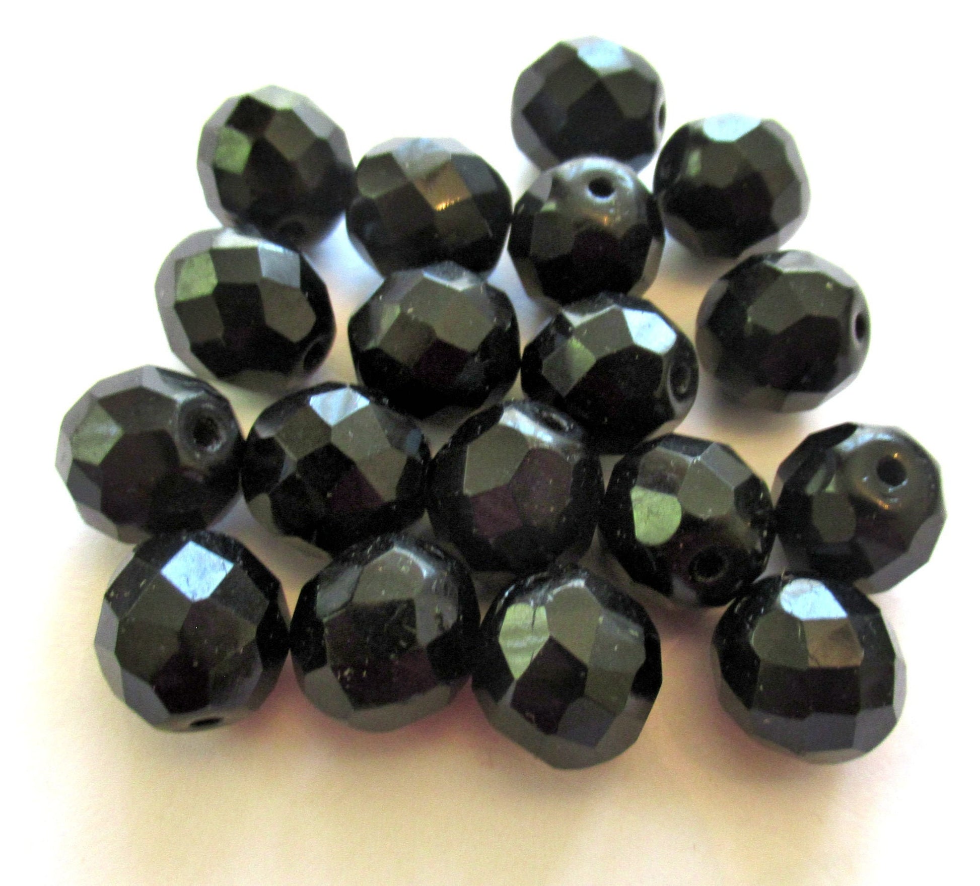 Ten Czech glass fire polished faceted round beads - 12mm jet black beads C0007
