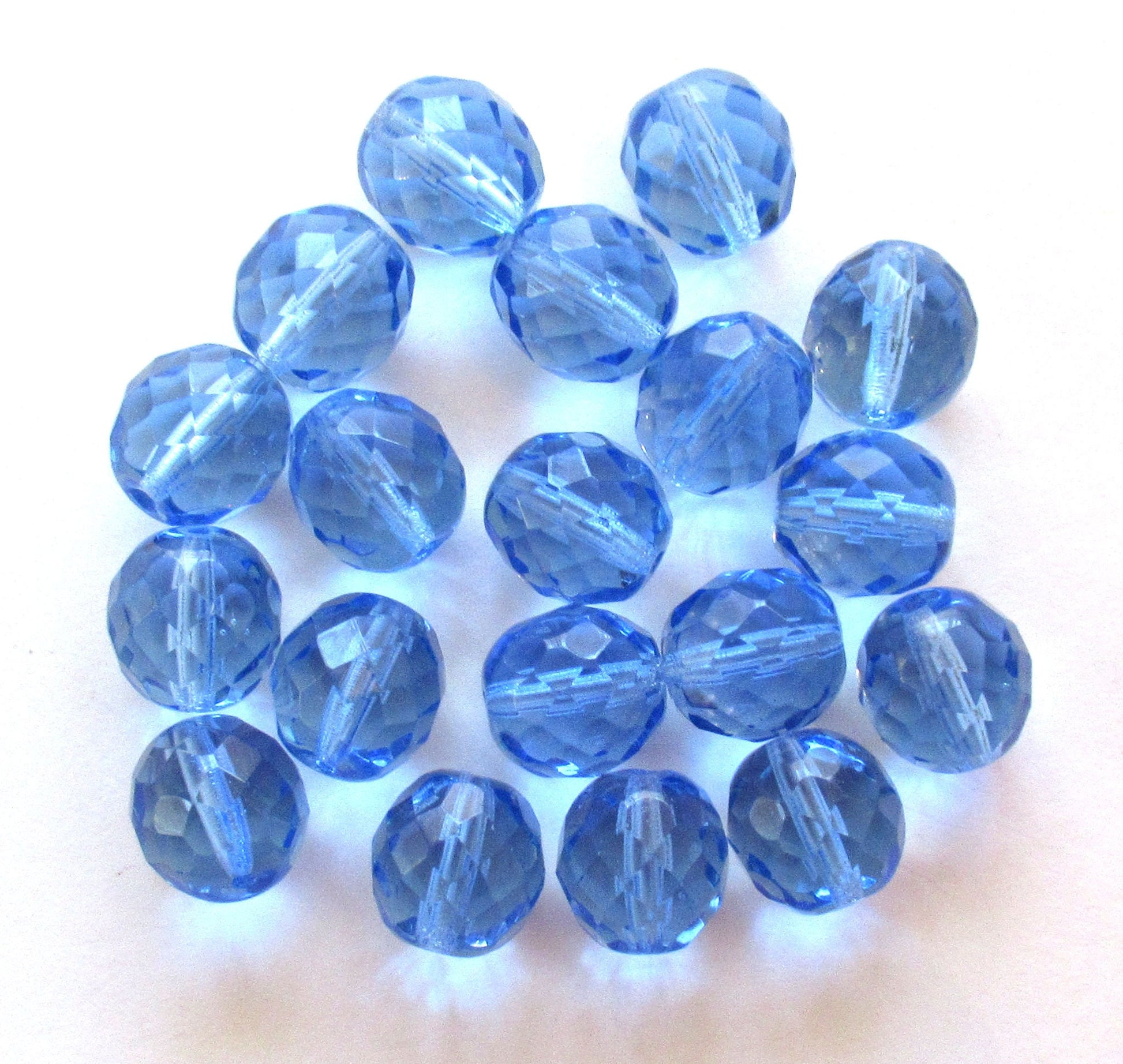 Ten Czech glass fire polished faceted round beads - 12mm light sapphire blue beads C0018