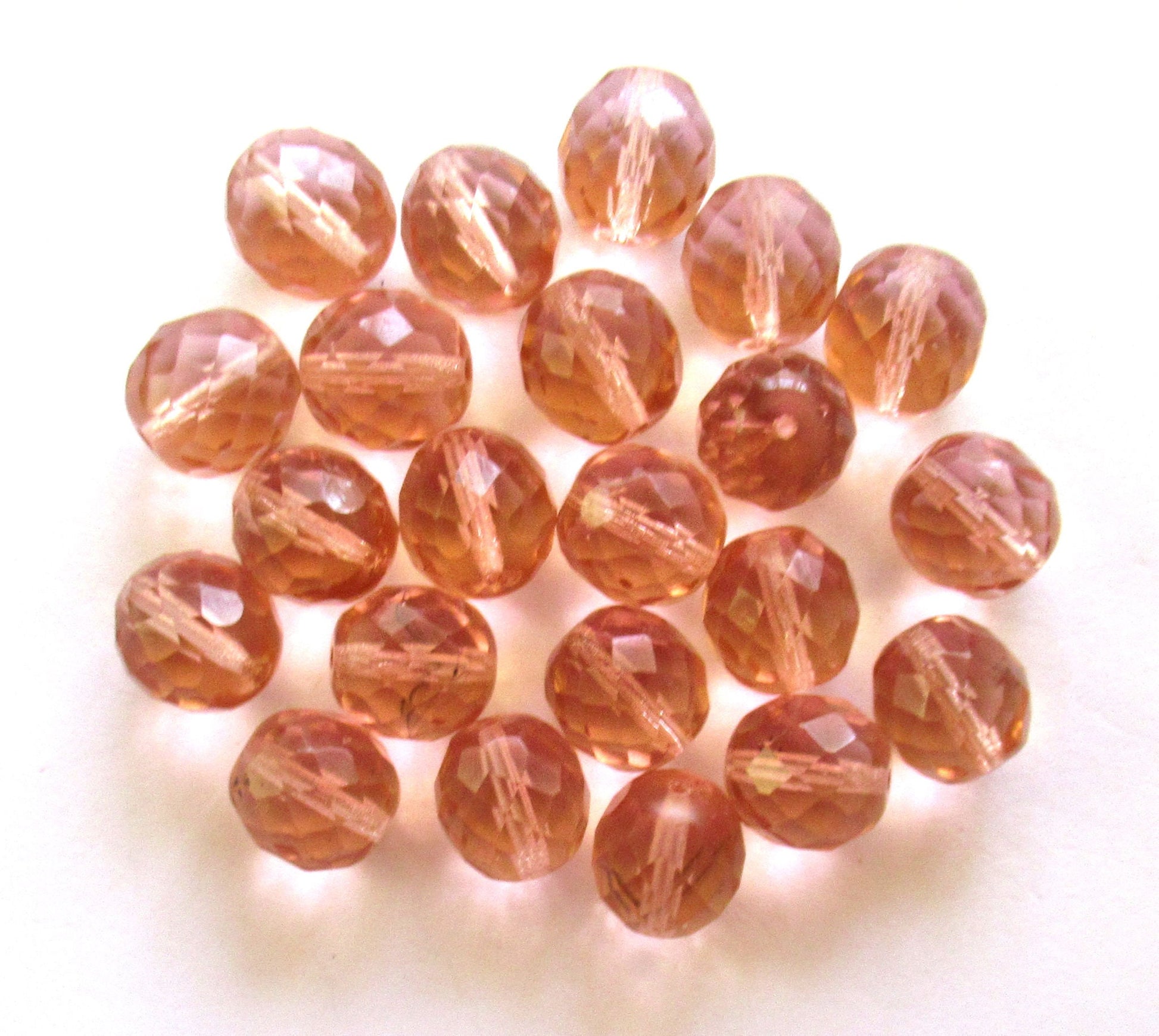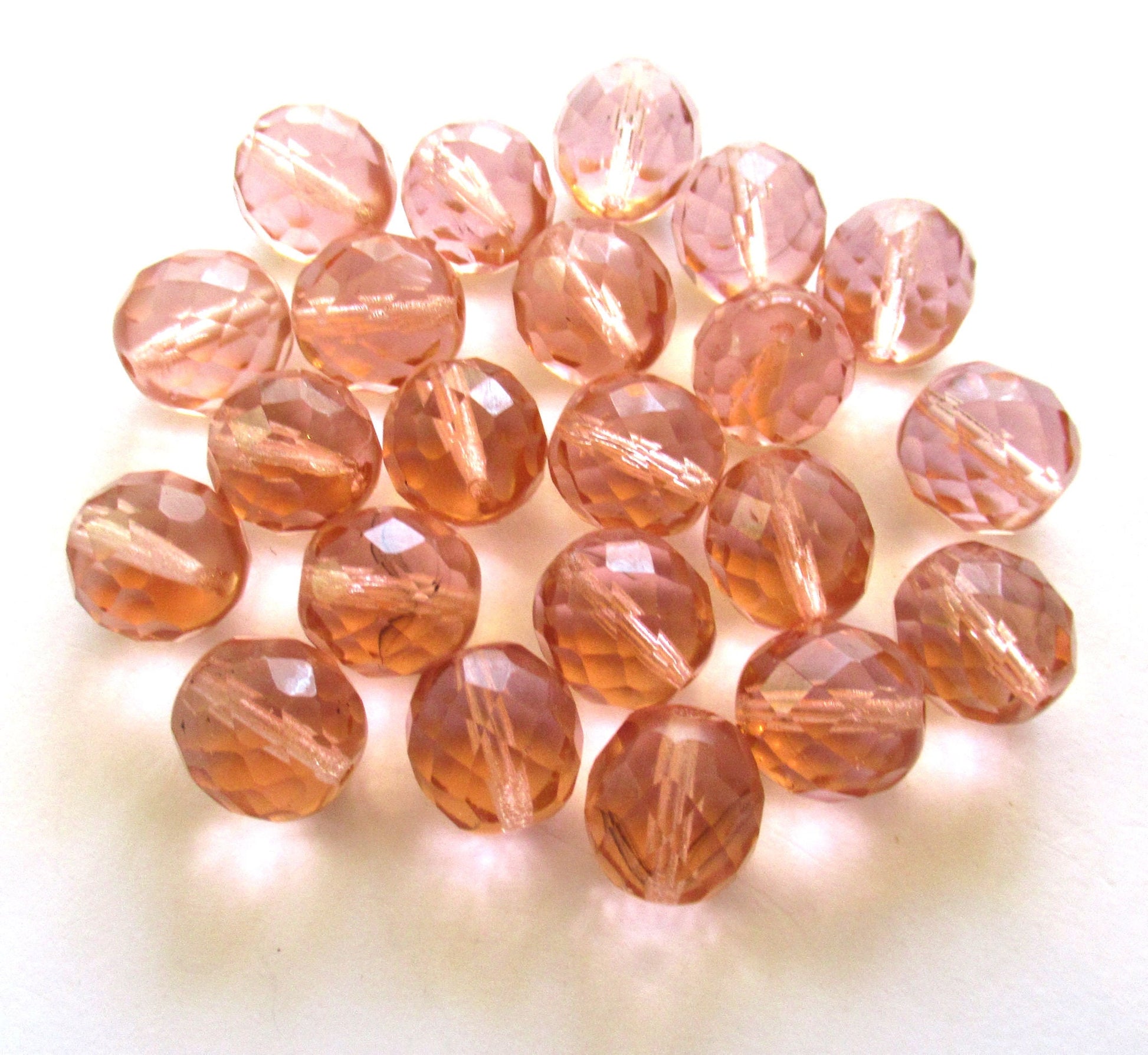 Ten Czech glass fire polished faceted round beads - 12mm transparent peach beads C0087