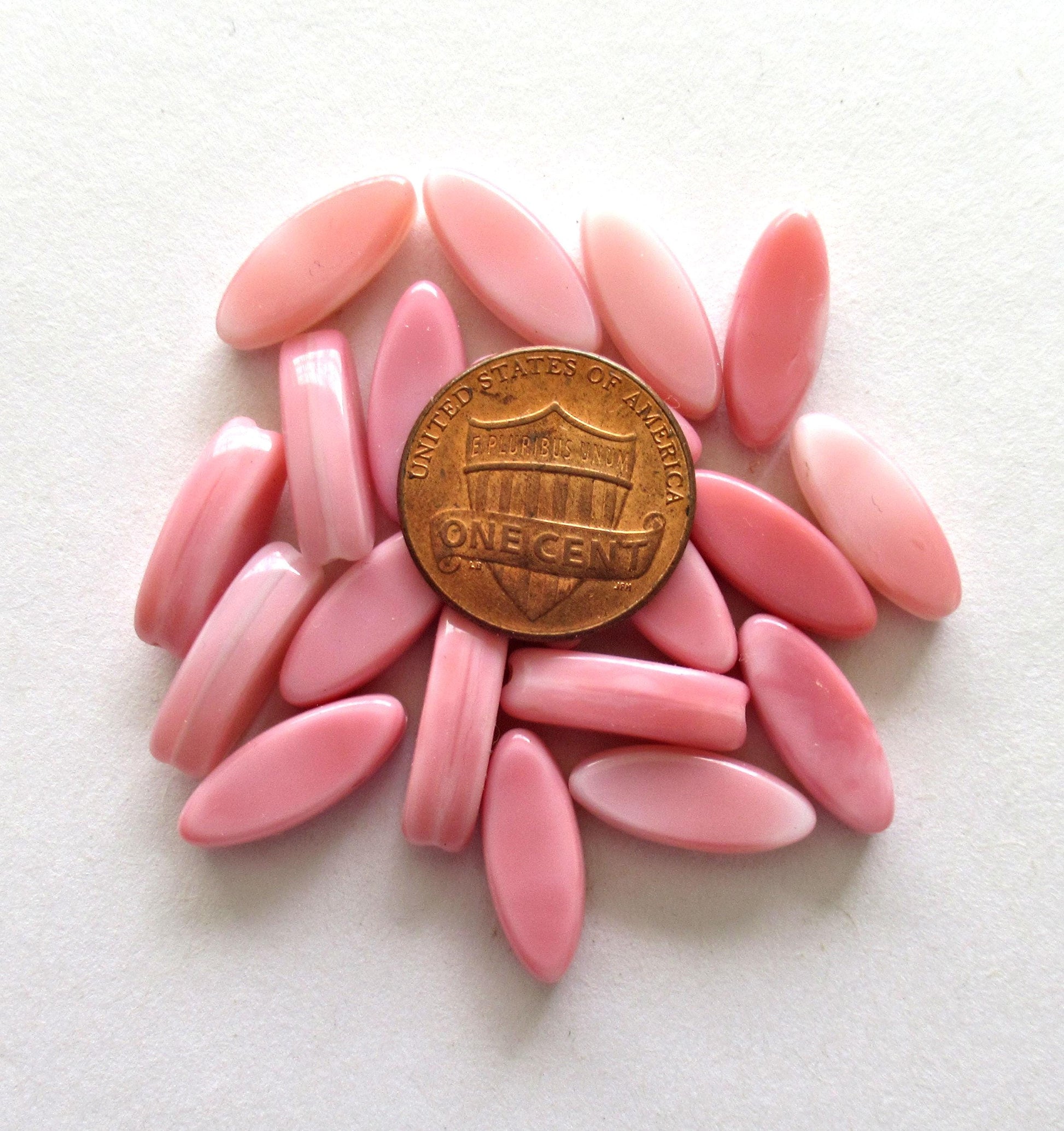 Ten Czech glass pink spindle beads - 16 x 6mm two tone pink & white oval pressed glass beads- C0007