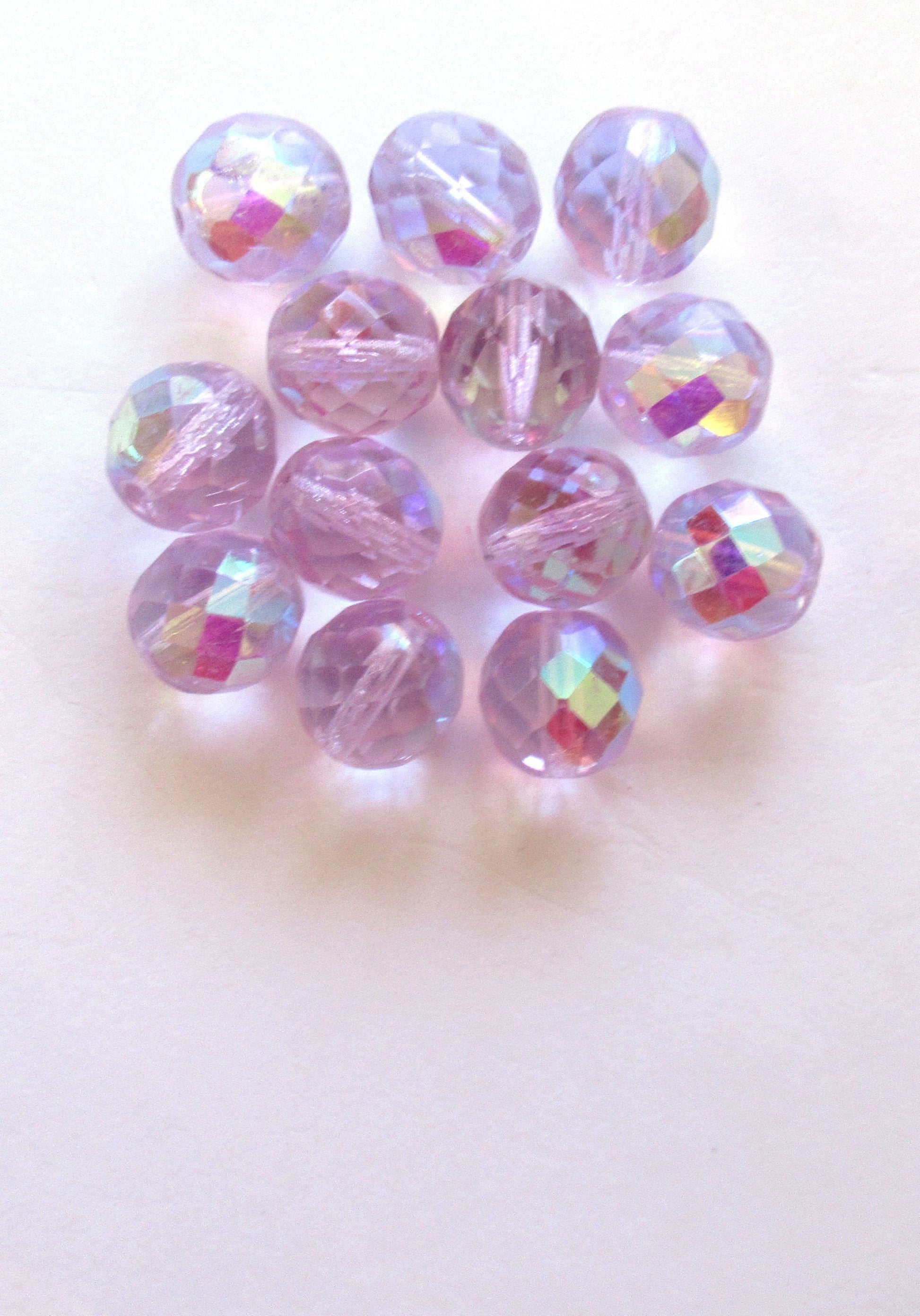 Ten large 12mm Czech glass fire polished faceted round beads - alexandrite, lilac, lavender AB beads C0089