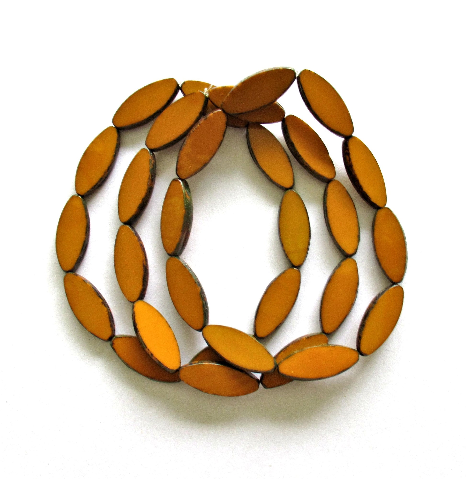 Ten large Czech glass spindle beads - opaque pumpkin orange picasso beads - 20 x 9mm - table cut almond shaped oval beads - C00122