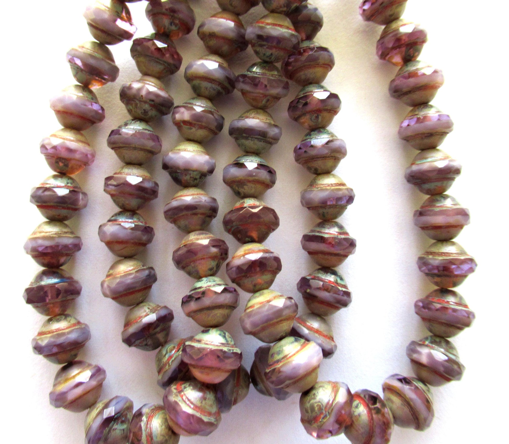 Ten purple Czech glass saturn beads - 8 x 10mm transparent & opaque mix amethyst - faceted saucer beads with a picsso finish - C04101